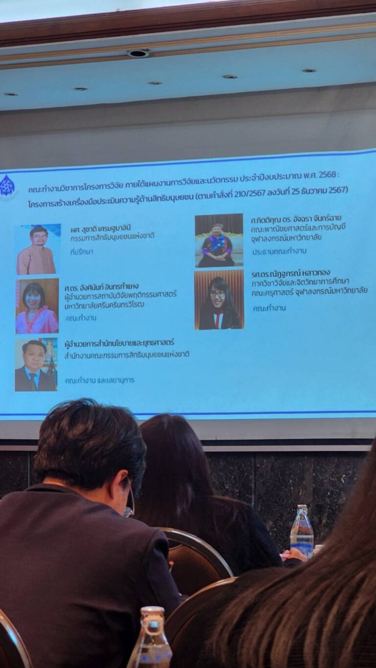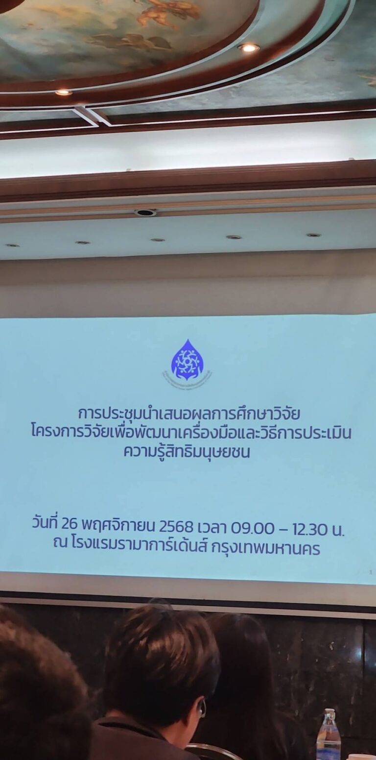วันพุธที่ 26 พฤศจิกายน 2568 พันตำรวจโท ประวุธ วงศ์สีนิล อธิบดีกรมราชทัณฑ์ มอบหมายให้ นางอันธิกา อ่อนพร้อม ปฏิบัติหน้าที่แทนผู้อำนวยการกองวิชาการและพัฒนานวัตกรรมกรมราชทัณฑ์ นายบงกช เนตรทิพย์ ผู้อำนวยการกลุ่มพัฒนาระบบด้านทัณฑวิทยา นางสาวมาริสา วิริยะรัมภ์ รักษาการนักทัณฑวิทยาเชี่ยวชาญ ด้านทัณฑวิทยา และนายพิพัฒน์ พวงสวัสดิ์ นิติกรชำนาญกองกฎหมาย เข้าร่วมประชุมวิพากษ์ผลการศึกษาวิจัยโครงการเพื่อพัฒนาเครื่องมือและวิธีการประเมินความรู้สิทธิมนุษยชน โดยมีวัตถุประสงค์เพื่อพัฒนาเครื่องมือ และวิธีการดังกล่าว สำหรับกลุ่มเป้าหมายที่เฉพาะเจาะจง และสำหรับประชาชนในวงกว้าง ณ โรงแรมรามาการ์เด้นส์ กรุงเทพมหานคร