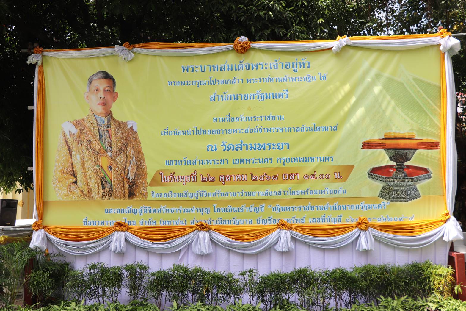 พระบาทสมเด็จพระเจ้าอยู่หัว ทรงพระกรุณาโปรดเกล้าฯ พระราชทานผ้าพระกฐิน ให้สำนักนายกรัฐมนตรี ตามที่ขอรับพระราชทาน เพื่อน้อมนำไปทอดถวายพระสงฆ์จำพรรษากาลถ้วนไตรมาส ณ วัดสามพระยา แขวงวัดสามพระยา เขตพระนคร กรุงเทพมหานคร ในวันพุธที่ ๒๒ ตุลาคม ๒๕๖๘ โดยมี นายโสภณ ซารัมย์ รองนายกรัฐมนตรี เป็นประธานในพิธีถวายผ้าพระกฐินพระราชทานสำนักนายกรัฐมนตรี ประจำปีพุทธศักราช ๒๕๖๘