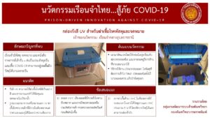 1. กล่องรังสี UV สำหรับฆ่าเชื้อโรคพัสดุและจดหมาย คิดค้นโดยเรือนจำกลางอุดรธานี