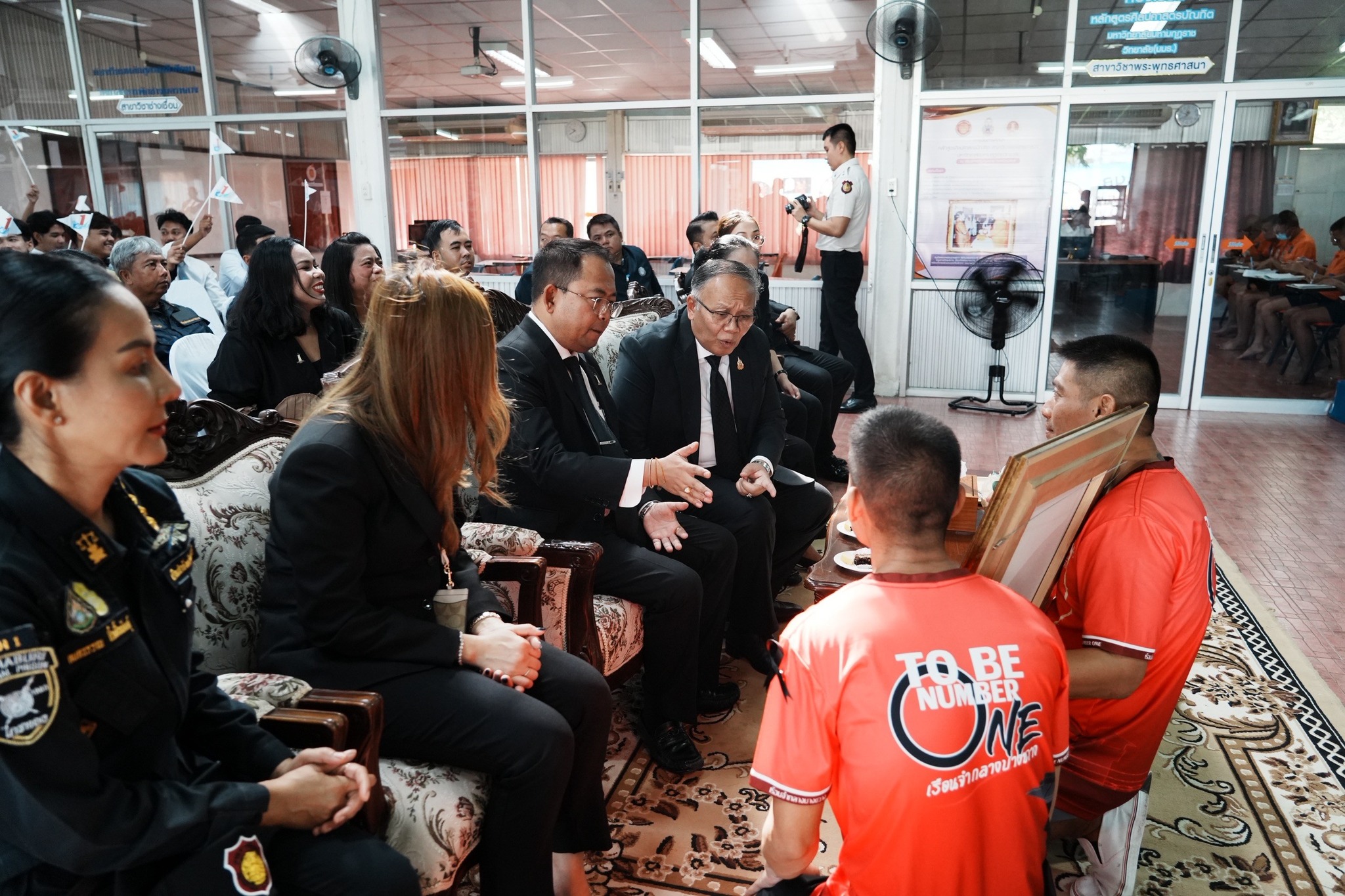 วันพฤหัสบดีที่ 13 พฤศจิกายน 2568 เวลา 09.00 น. นายสิรภพ ดวงสอดศรี ผู้ช่วยรัฐมนตรีประจำกระทรวงยุติธรรม พร้อมด้วยคณะอาจารย์ และนิสิตมหาวิทยาลัยทักษิณ หลักสูตรรัฐประศาสนศาสตรบัณฑิต ชั้นปีที่ 3 จำนวน 107 คน เข้าศึกษาดูงานภายในเรือนจำกลางบางขวาง เกี่ยวกับกระบวนการควบคุมผู้ต้องขัง การบำบัดฟื้นฟูผู้ต้องขังในกระบวนการยุติธรรม โดยได้รับฟังบรรยายสรุปภารกิจเรือนจำ รับชมกิจกรรมและการแสดงชมรม To be number one ณ หอประชุมแดน 14 เยี่ยมชมเรือนนอนฝ่ายควบคุมแดน 9 และเยี่ยมชมฝ่ายควบคุมแดน 11 โดยมีนางสุจิตรา แก้วไกร รองอธิบดีกรมพินิจและคุ้มครองเด็กและเยาวชน พร้อมด้วยนายปราโมทย์ ทองศรี ผู้บัญชาการเรือนจำกลางบางขวาง นางกนกวรรณ จิ๋วเชื้อพันธุ์ ผู้บัญชาการเรือนจำจังหวัดนนทบุรี ข้าราชการและเจ้าหน้าที่ ให้การต้อนรับ ณ เรือนจำกลางบางขวาง