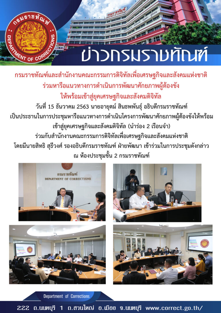 กรมราชทัณฑ์ โดยกองพัฒนาพฤตินิสัย เข้าร่วมประชุมหารือการสร้างงาน สร้างอาชีพ การฝึกวิชาชีพและส่งเสริมทักษะ ณ เรือนจำจังหวัดปทุมธานี