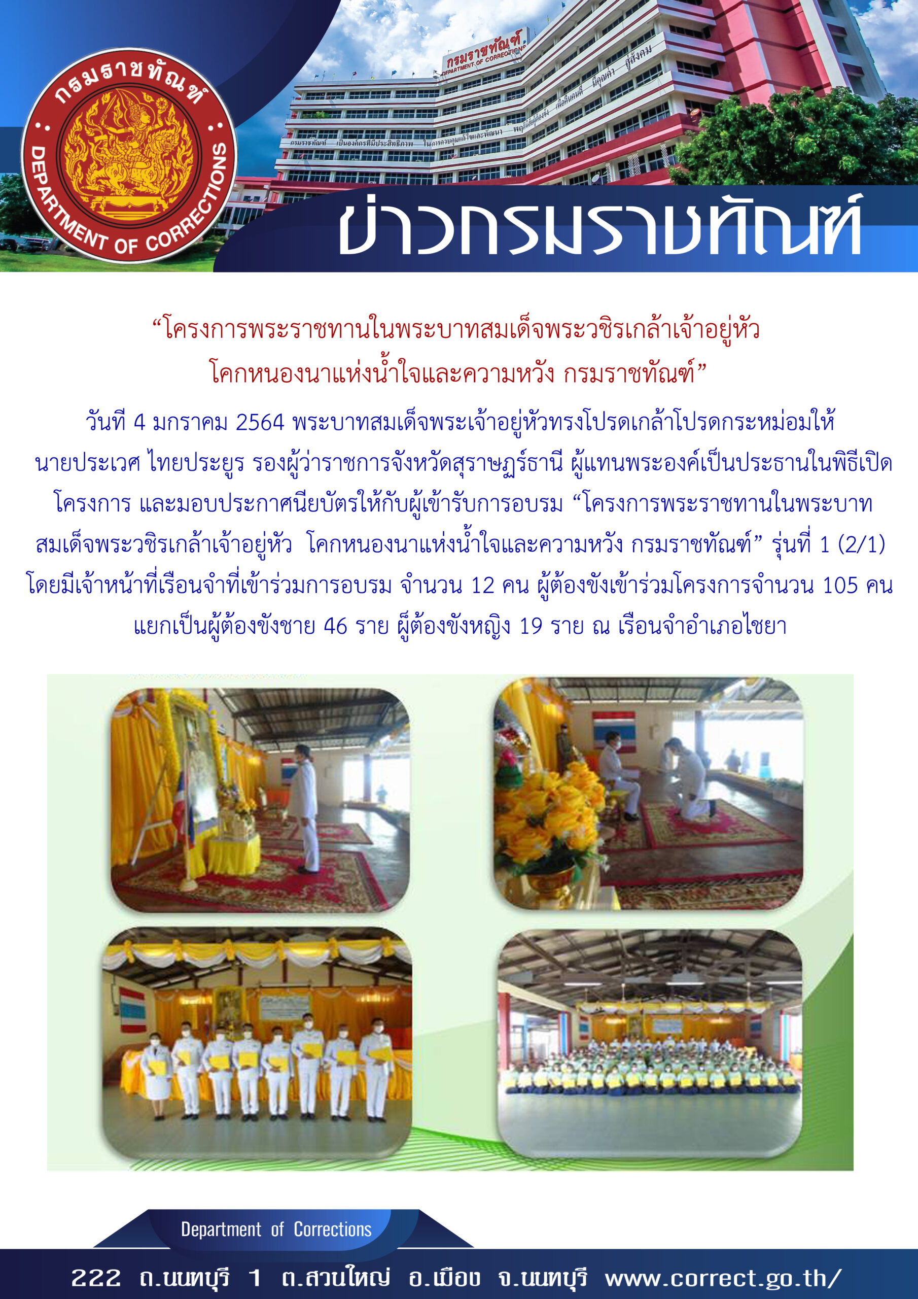 หน้าแรก » ภาพข่าวประชาสัมพันธ์ กิจกรรมกรมราชทัณฑ์ ระหว่างวันที่ 4 – 5 มกราคม 2564