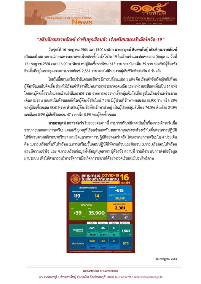 Email ติดต่อราชการ : saraban@doc.mail.go.th และ Email : prcorrection@gmail.com