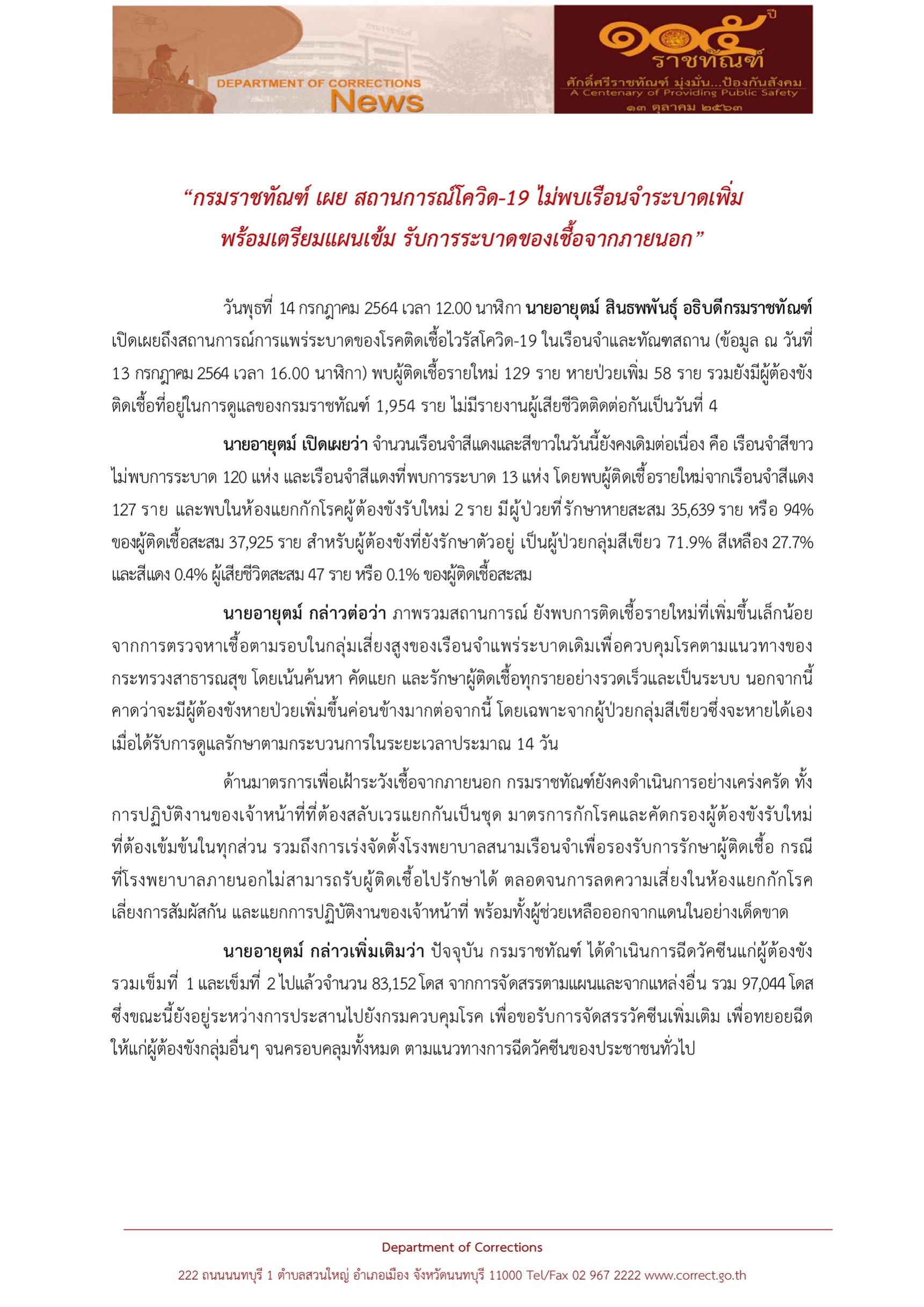 Email ติดต่อราชการ : saraban@doc.mail.go.th และ Email : prcorrection@gmail.com