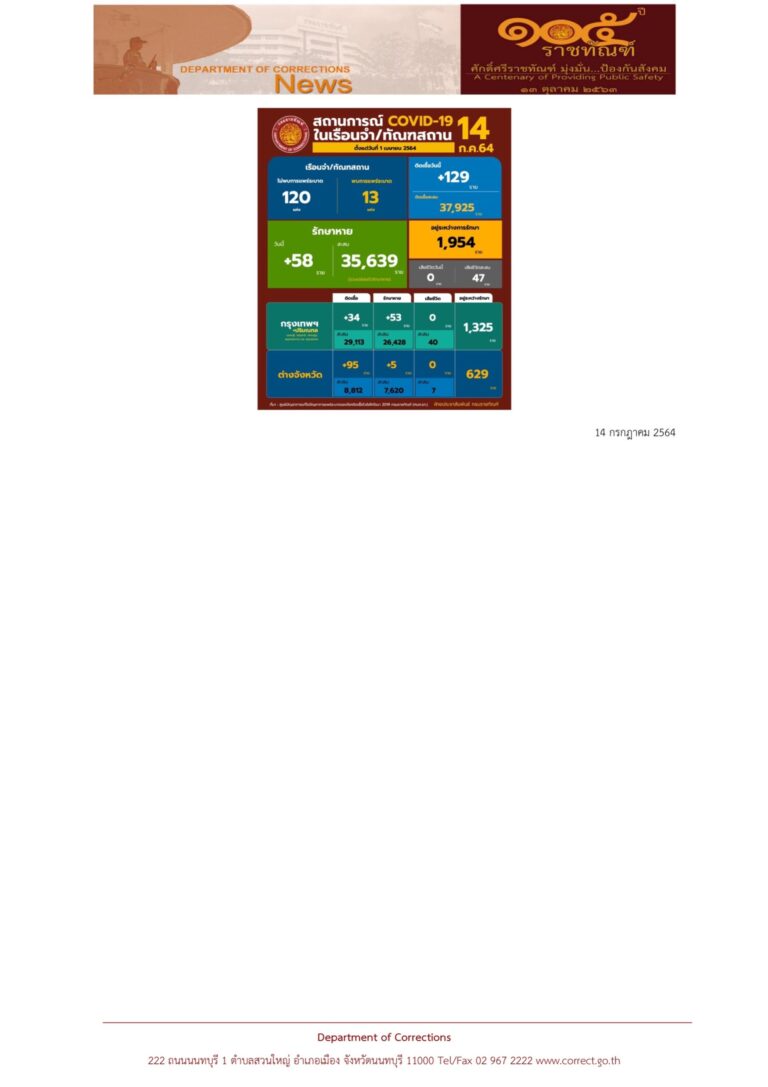 หน้าแรก » สถานการณ์โควิดในเรือนจํา/ทัณฑสถานประจำวันที่ 14 ก.ค. 64