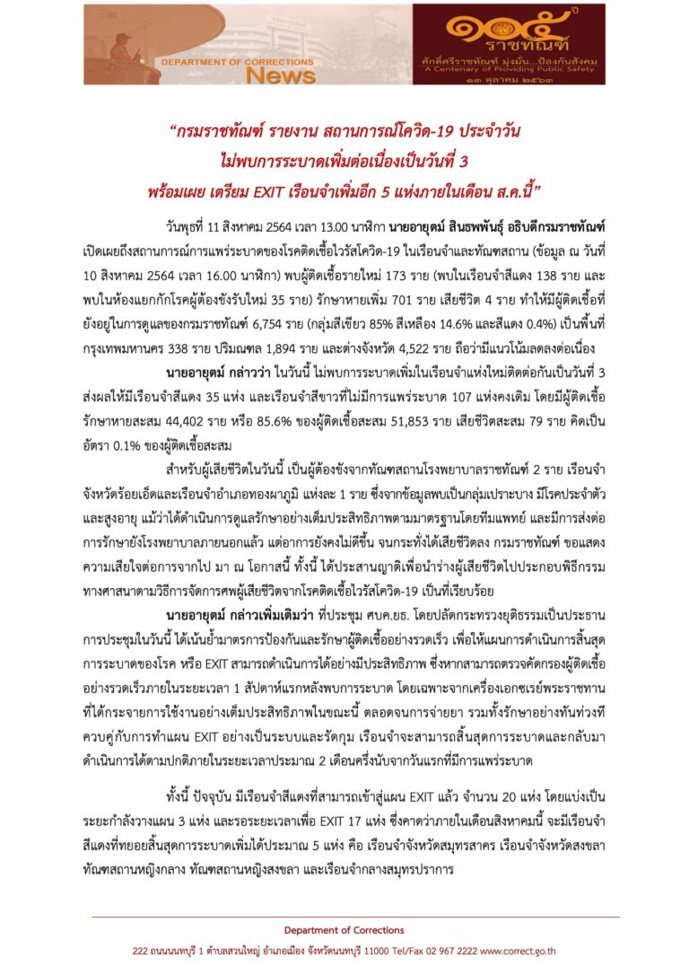หน้าแรก » สถานการณ์โควิดในเรือนจํา/ทัณฑสถานประจำวันที่ 11 สิงหาคม 2564