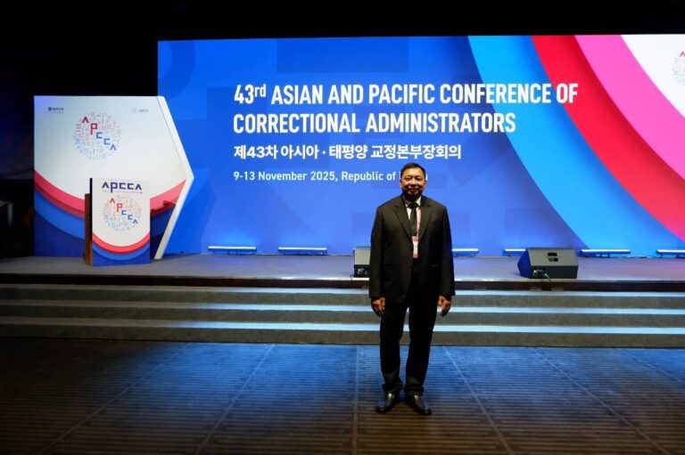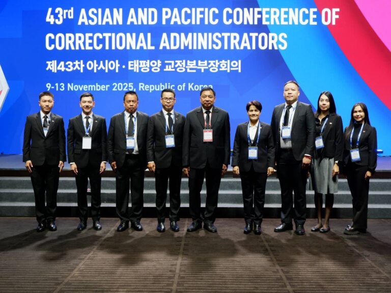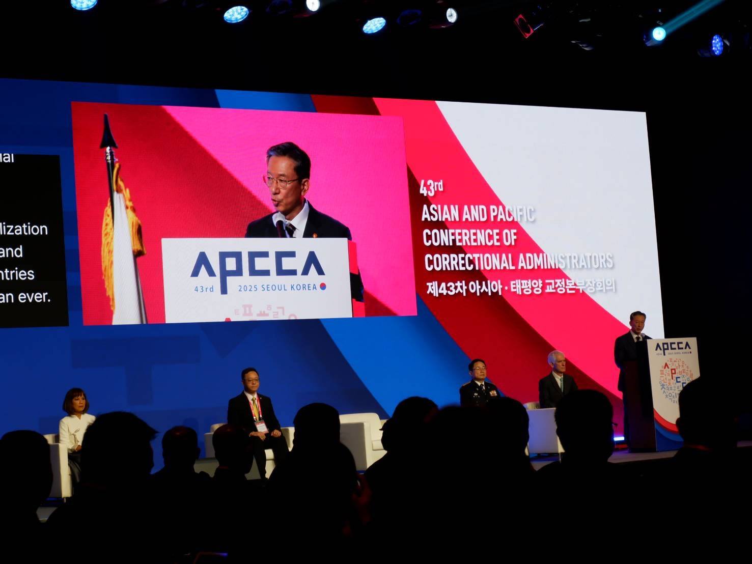 วันที่ 10 พฤศจิกายน 2568 พันตำรวจโทประวุธ วงศ์สีนิล อธิบดีกรมราชทัณฑ์ พร้อมด้วยนายมงคล จันทะจร ผู้บัญชาการเรือนจำกลางอุดรธานี นายพิทักษ์พงษ์ น้อยพิทักษ์ ผู้บัญชาการเรือนจำอำเภอธัญบุรี นางสาววลัยลักษณ์ ชุ่มชื่น ผู้อำนวยการทัณฑสถานหญิงกลาง นายกลยุทธ พานาสันต์ ผู้อำนวยการกองทัณฑวิทยา นายวิชชวุฒิ ศุภพิพัฒน์ ผู้อำนวยการกลุ่มงานราชทัณฑ์ต่างประเทศ และเจ้าหน้าที่ในสังกัดกรมราชทัณฑ์ เข้าร่วมพิธีเปิดการประชุมผู้บริหารงานราชทัณฑ์เอเชียและแปซิฟิก (APCCA) ครั้งที่ 43 ประจำปี 2568 ณ The Shilla Hotel กรุงโซล สาธารณรัฐเกาหลีใต้