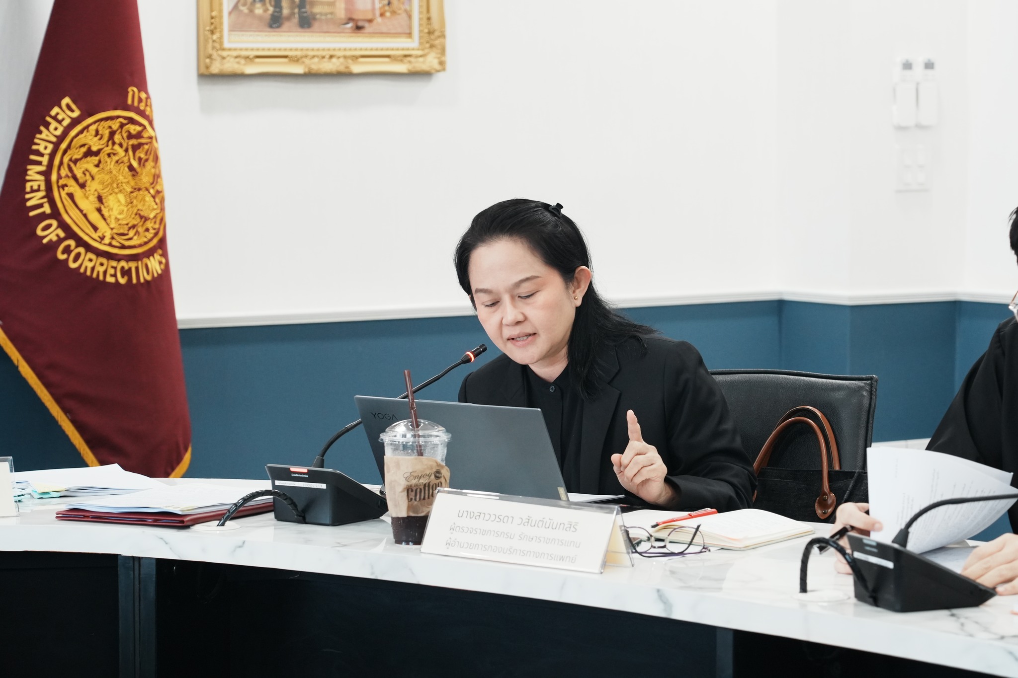 โดยมี นางสาววรดา วสันต์นันทสิริ ผู้ตรวจราชการกรม รักษาราชการแทนผู้อำนวยการกองบริการทางการแพทย์ นางสาววริศรา ศิริสุทธิเดชา ผู้อำนวยการกองพัฒนาพฤตินิสัย ข้าราชการและเจ้าหน้าที่ที่เกี่ยวข้อง เข้าร่วมผ่านระบบออนไลน์ Cisco WebX ณ ห้องประชุมอธิบดีกรมราชทัณฑ์ ชั้น 2