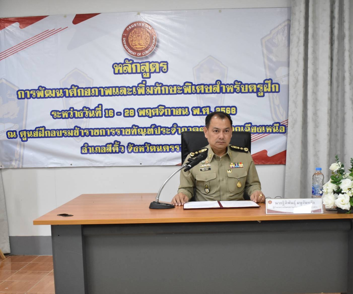 วันศุกร์ที่ 28 พฤศจิกายน 2568 พันตำรวจโทประวุธ วงศ์สีนิล อธิบดีกรมราชทัณฑ์ มอบหมายให้ ดร.ฐิติพันธุ์ มนูจันทรัถ ผู้อำนวยการทัณฑสถานเกษตรอุตสาหกรรมเขาพริก เป็นประธานพิธีปิดพร้อมมอบใบประกาศนียบัตร ในการอบรมหลักสูตร การพัฒนาศักยภาพและเพิ่มทักษะพิเศษหรับครูฝึก โดยมี นางสาวสุกัญญา ไทยน้อย ผู้อำนวยการสถาบันพัฒนาข้าราชการราชทัณฑ์ เป็นผู้กล่าวรายงานในพิธีปิดการอบรม ณ ศูนย์ฝึกอบรมข้าราชการราชทัณฑ์ประจำภาคตะวันออกเฉียงเหนือ อำเภอสีคิ้ว จังหวัดนครราชสีมา