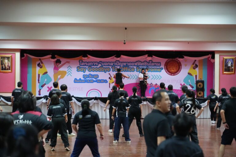 วันพุธที่ 18 มีนาคม 2569 เวลา 15.30 น. กรมราชทัณฑ์ โดยกลุ่มงานสวัสดิการและเจ้าหน้าที่สัมพันธ์ กองบริหารทรัพยากรบุคคล จัดโครงการ “บอกลาปัญหาออฟฟิศซินโดรม Say Goodbye To Office Syndrome” โดยมี ร้อยตำรวจเอก สุรวุฒิ รังไสย์ รองอธิบดีกรมราชทัณฑ์ ฝ่ายบริหาร นำคณะผู้บริหาร ข้าราชการ และเจ้าหน้าที่กรมราชทัณฑ์ ร่วมกิจกรรมออกกำลังกาย เพื่อเสริมสร้างความแข็งแรงของกล้ามเนื้อ ลดอาการปวดเมื่อยจากการทำงาน และส่งเสริมให้บุคลากรหันมาดูแลสุขภาพมากยิ่งขึ้น