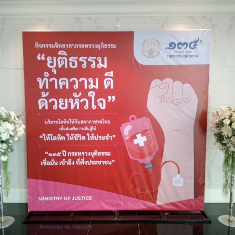 วันอังคารที่ 17 มีนาคม 2569 สำนักงานปลัดกระทรวงยุติธรรม กำหนดจัดกิจกรรมจิตอาสาพัฒนา “ยุติธรรมทำความ ดี ด้วยหัวใจ” ด้วยการบริจาคโลหิต เนื่องในโอกาสครบรอบการสถาปนากระทรวงยุติธรรม 135 ปี กระทรวงยุติธรรม “เชื่อมั่น เข้าถึง ที่พึ่งของประชาชน” โดยมีเจ้าหน้าที่ส่วนกลางกรมราชทัณฑ์ พร้อมด้วยเจ้าหน้าที่จากเรือนจำ/ทัณฑสถาน เขต 10 ร่วมกิจกรรมดังกล่าว ณ ห้องรับรอง ชั้น 2 กระทรวงยุติธรรม
