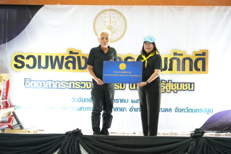 วันจันทร์ที่ 26 มกราคม 2569 เวลา 09.30 น. นางพงษ์สวาท นีละโยธิน ปลัดกระทรวงยุติธรรม เป็นประธานในการจัดกิจกรรม “รวมพลังแห่งความภักดี จิตอาสากระทรวงยุติธรรม นำความรู้สู่ชุมชน” โดยมี นางจิรภา สินธุนาวา รองปลัดกระทรวงยุติธรรม นางสาวรวิวรรณ จตุรพิธพร รองปลัดกระทรวงยุติธรรม นางธารินี แสงสว่าง รองปลัดกระทรวงยุติธรรม พร้อมคณะผู้บริหารกระทรวงยุติธรรม และผู้แทนหน่วยงานในสังกัดกระทรวงยุติธรรม เครือข่ายภาคประชาชน และผู้ที่เกี่ยวข้อง ร่วมกิจกรรมดังกล่าว