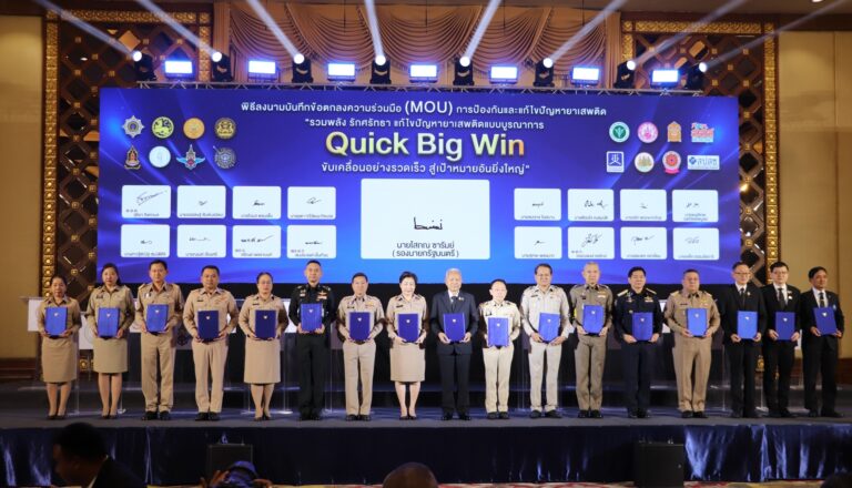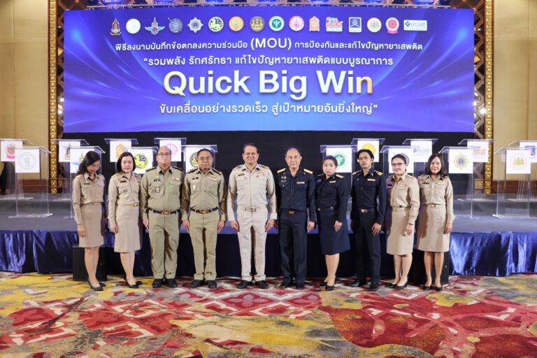 วันจันทร์ที่ 17 พฤศจิกายน 2568 เวลา 10.30 น. นายอนุทิน ชาญวีรกูล นายกรัฐมนตรี และ รัฐมนตรีว่าการกระทรวงมหาดไทย มอบหมายให้ นายโสภณ ซารัมย์ รองนายกรัฐมนตรี เป็นประธานในพิธีลงนามบันทึกข้อตกลงความร่วมมือ (Memorandum Of Understanding : MOU) การป้องกันและแก้ไขปัญหายาเสพติดด้านการบำบัดรักษาและฟื้นฟูยาเสพติด “รวมพลัง รักศรัทธา แก้ปัญหายาเสพติดแบบบูรณาการ Quick Big Win : ขับเคลื่อนอย่างรวดเร็ว สู่เป้าหมายอันยิ่งใหญ่” โดยมี พลตำรวจโท รุทธพล เนาวรัตน์ รัฐมนตรีว่าการกระทรวงยุติธรรม พร้อมด้วย คณะผู้บริหารสังกัดกระทรวงยุติธรรม และ หัวหน้าส่วนราชการ จำนวน 16 หน่วยงาน ร่วมลงนามในบันทึกข้อตกลงฯ ทั้งนี้นายสมบูรณ์ ศิลา รองอธิบดีกรมราชทัณฑ์ ฝ่ายปฏิบัติการ ร่วมเป็นสักขีพยาน พร้อมด้วย นายพงษ์อภินันทน์ จันกลิ่น เลขานุการกรม ข้าราชการและเจ้าหน้าที่ที่เกี่ยวข้อง เข้าร่วมฯ ณ โรงแรมปรินซ์ พาเลช กรุงเทพมหานคร