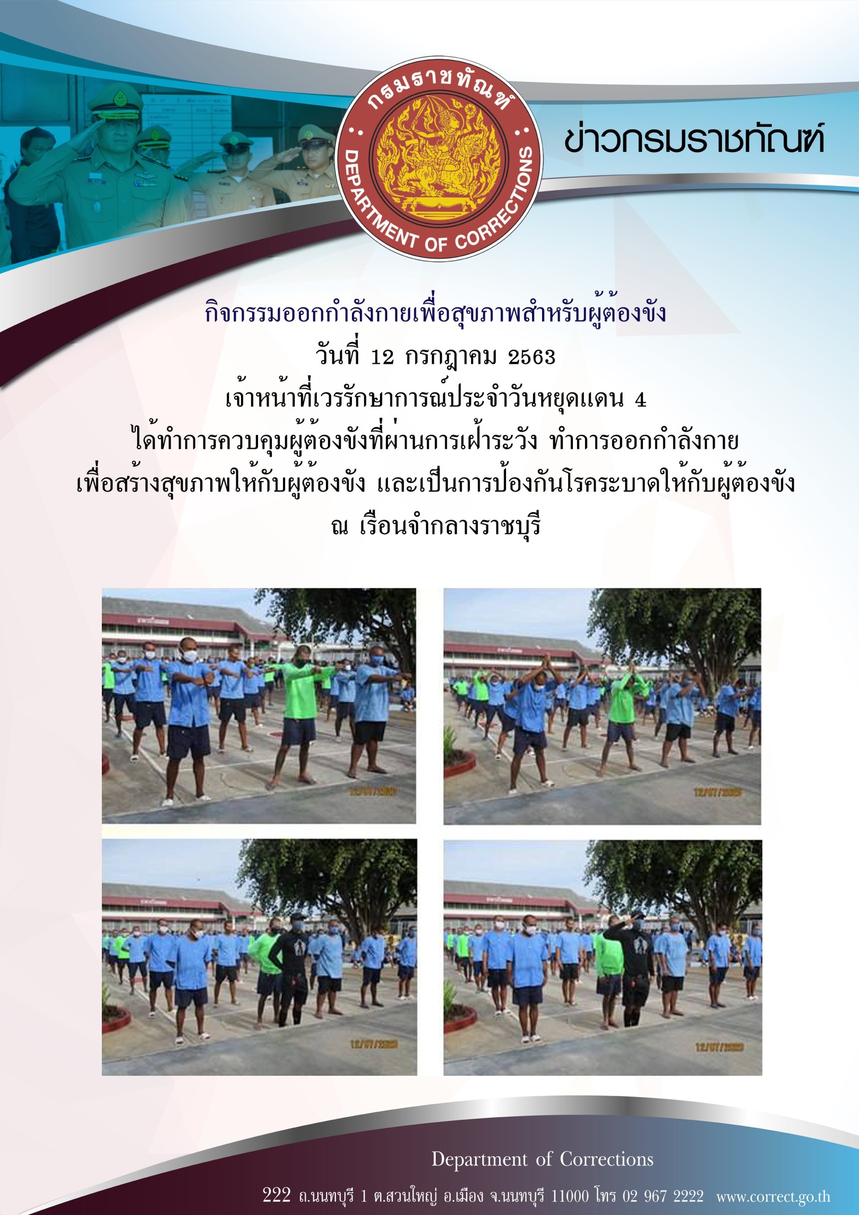 กรมราชทัณฑ์ โดยกลุ่มงานจริยธรรมกรมราชทัณฑ์ จัดกิจกรรมทำบุญตักบาตร ประจำเดือนเมษายน 2569 ประจำปีงบประมาณ พ.ศ. 2569 ครั้งที่ 4/2569 และเนื่องวันพระราชสมภพสมเด็จพระกนิษฐาธิราชเจ้า กรมสมเด็จพระเทพรัตนราชสุดาฯ สยามบรมราชกุมารี 2 เมษายน 2569