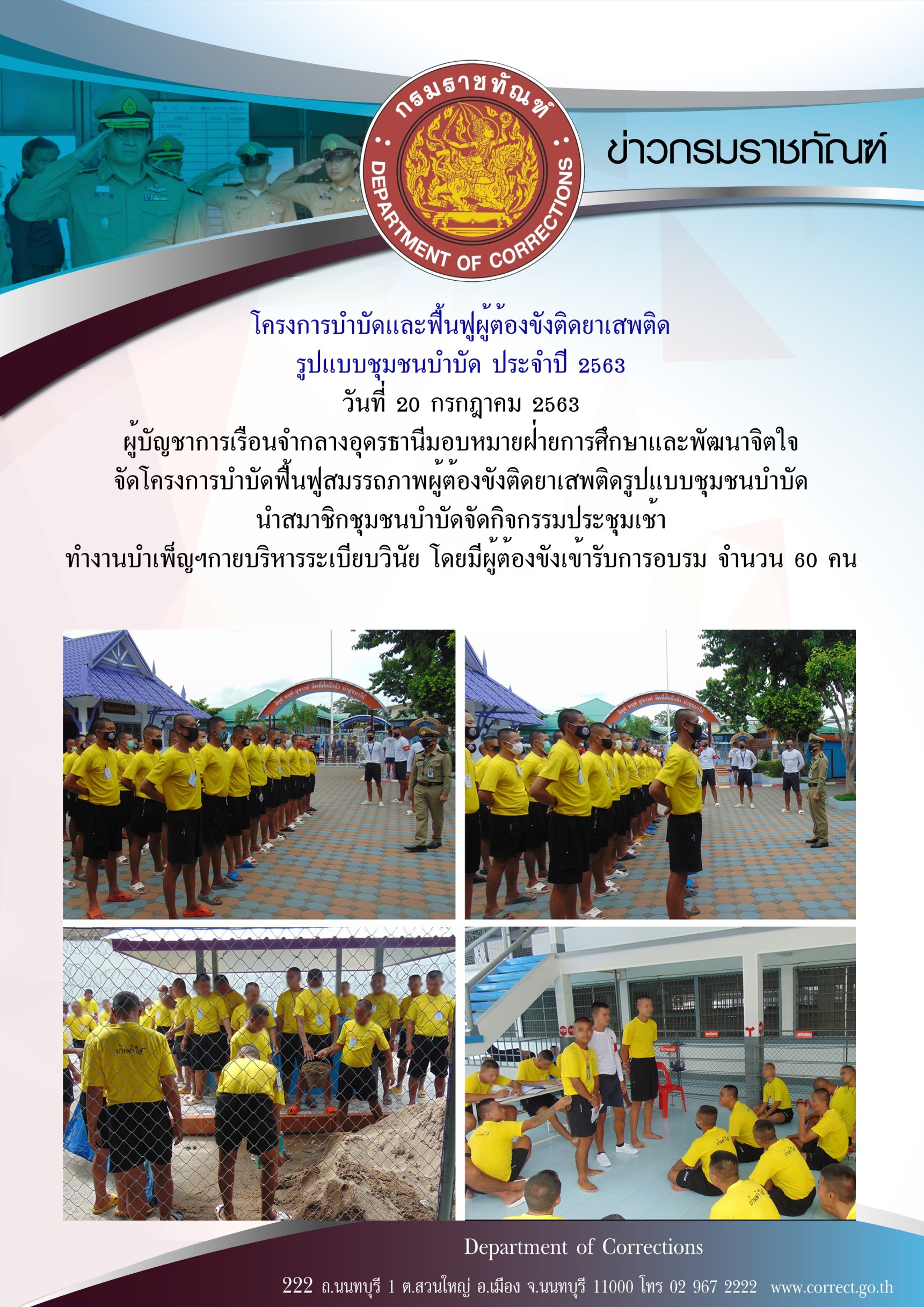 รองอธิบดีกรมราชทัณฑ์ เป็นประธานในการประชุมเชิงปฏิบัติการพัฒนาขีดความสามารถและฝึกปฏิบัติด้านการจัดการระบบบำบัดน้ำเสียในเรือนจำ ครั้งที่ 2