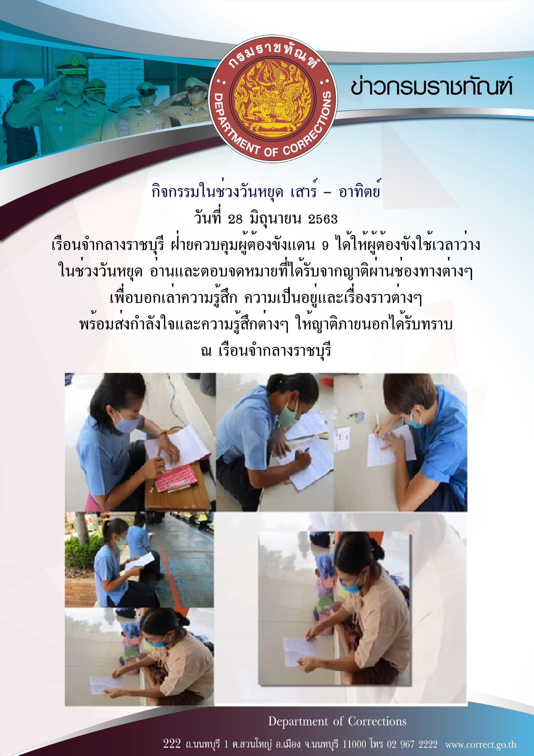 Email ติดต่อราชการ : saraban@doc.mail.go.th และ Email : prcorrection@gmail.com