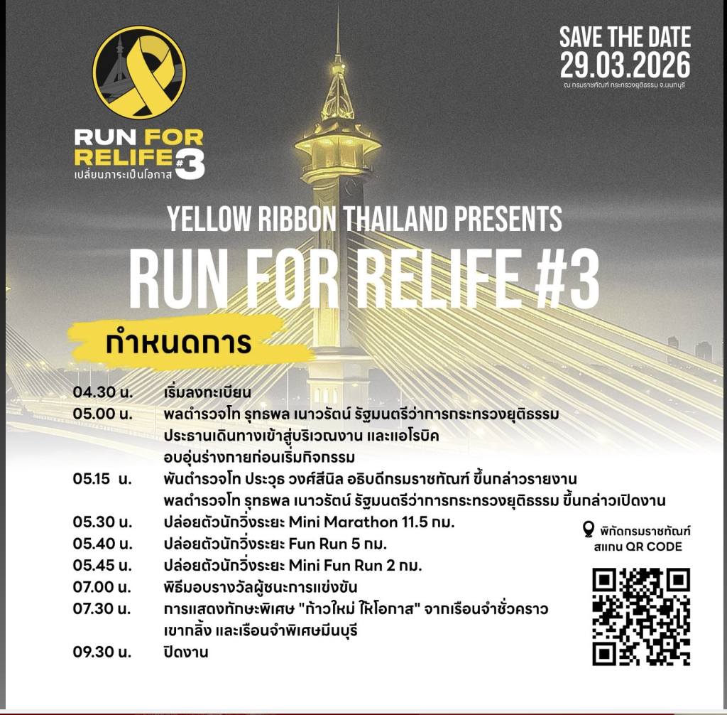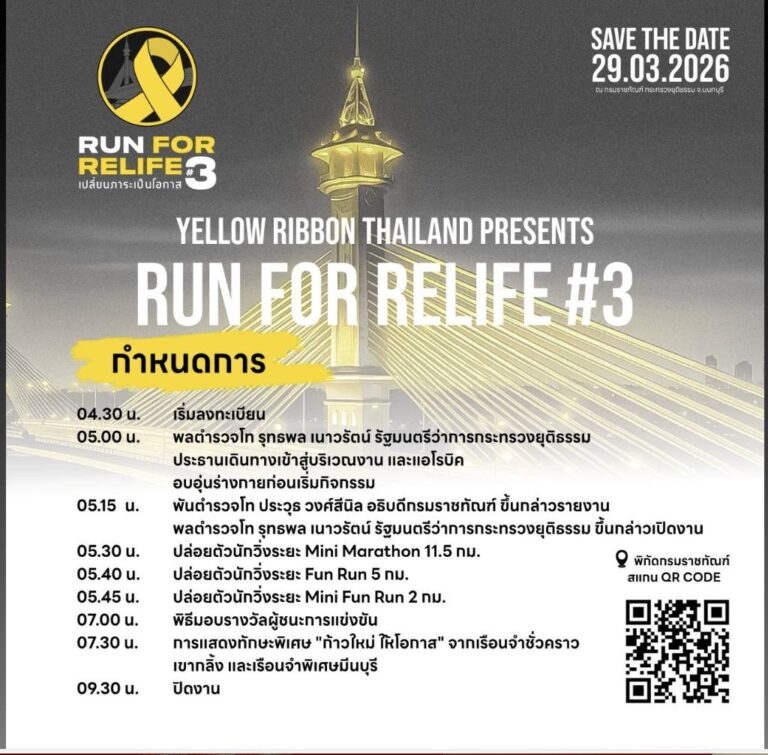 หน้าแรก » จุดจอดรถผู้ที่ร่วมงานวิ่งการกุศลกรมราชทัณฑ์ครั้งที่3 “Yellow Ribbon Thailand Presents ราชทัณฑ์ Run For Relife 2026”
