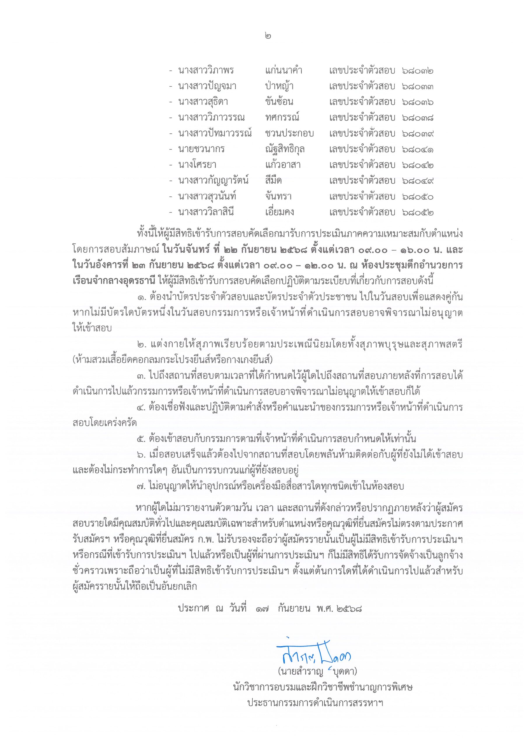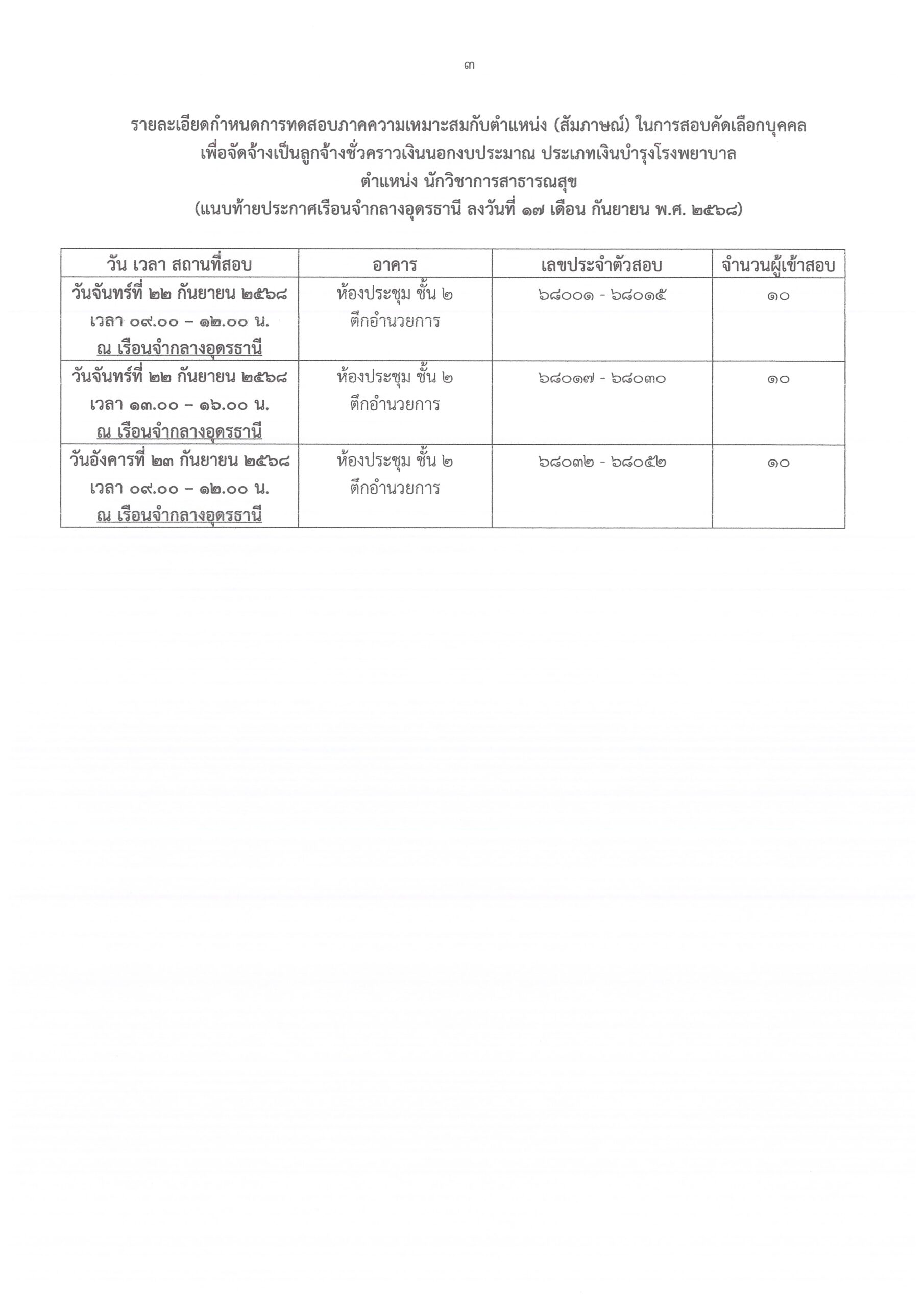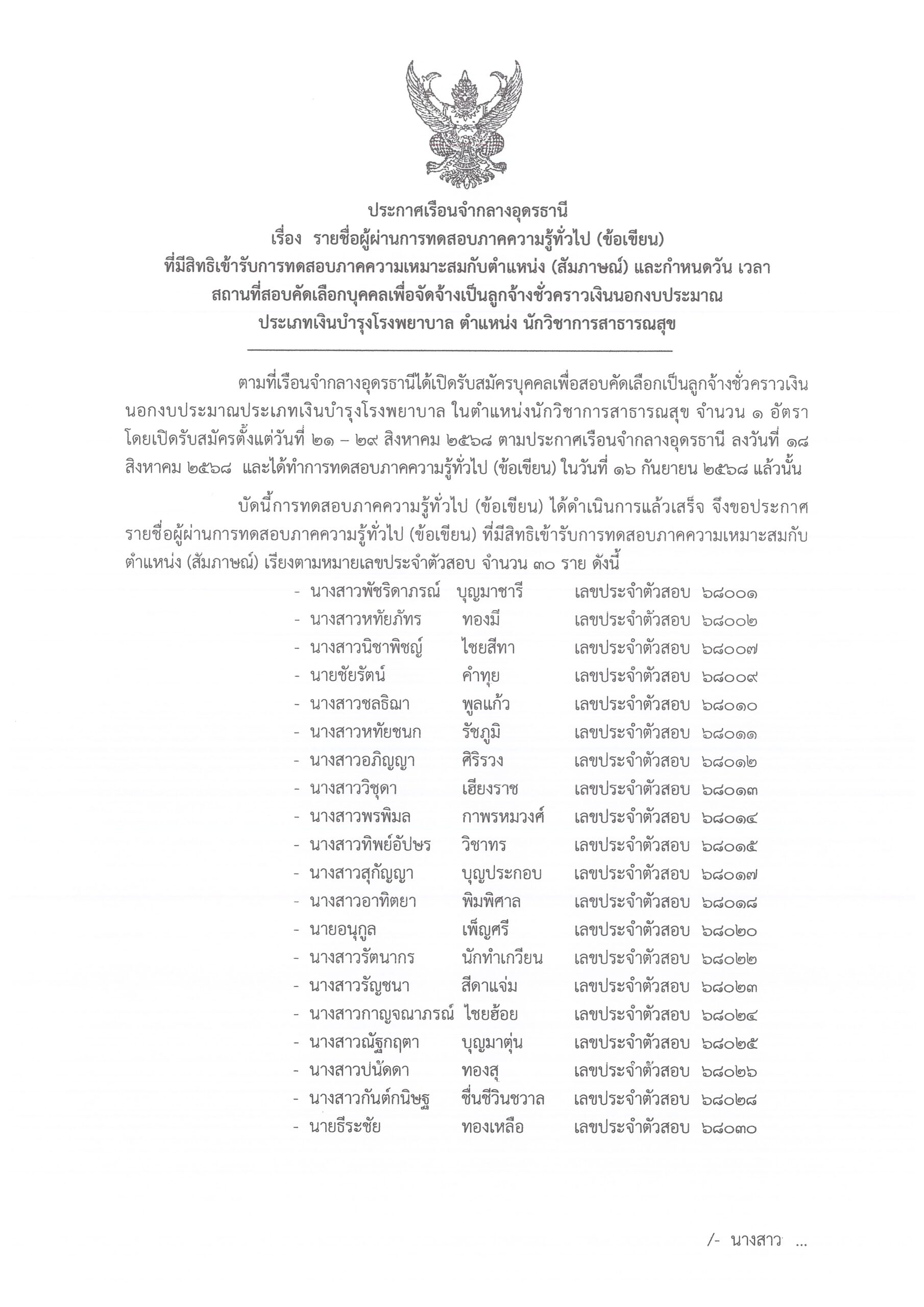 หน้าแรก » ประกาศเรือนจำกลางอุดรธานี รายชื่อผู้มีสิทธิเข้ารับการทดสอบภาคความเหมาะสมกับตำแหน่ง (สัมภาษณ์) เพื่อจัดจ้างเป็นลูกจ้างชั่วคราวเงินนอกงบประมาณ ประเภทเงินบำรุงโรงพยาบาล ตำแหน่ง นักวิชาการสาธารณสุข