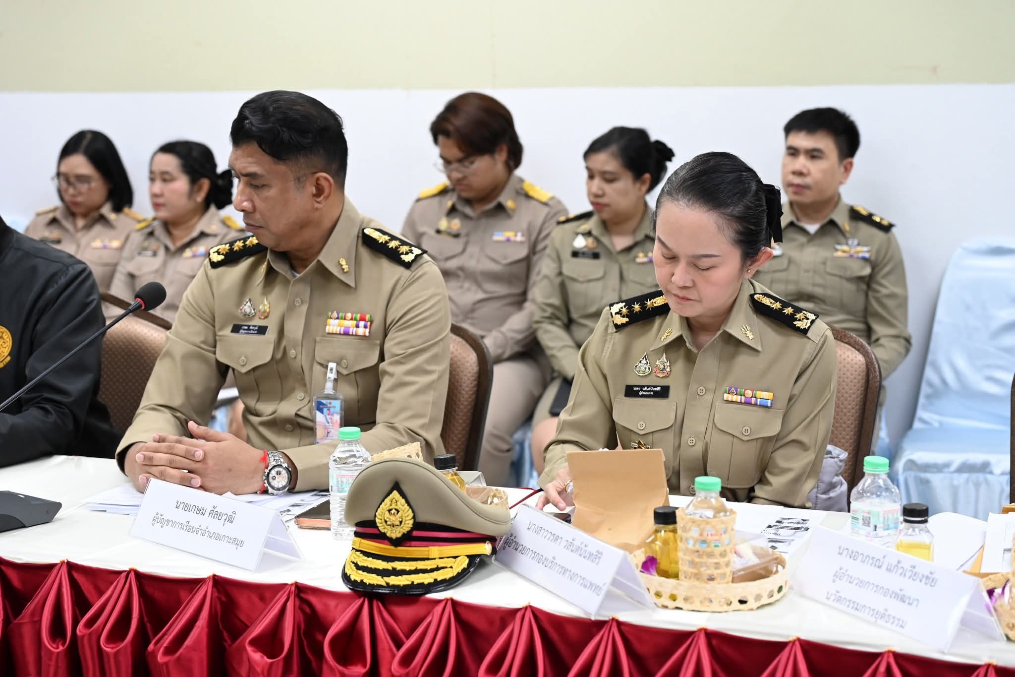พลอากาศเอก สมคิด สุขบาง กรมวังผู้ใหญ่ประจำพระองค์ สมเด็จพระเจ้าลูกเธอเจ้าฟ้าพัชรกิติยาภา นเรนทิราเทพยวดี กรมหลวงราชสาริณีสิริพัชร มหาวัชรราชธิดา และรองประธานคณะกรรมการกองทุนกำลังใจฯ ตรวจเยี่ยมโครงการราชทัณฑ์ปันสุข ทำความ ดี เพื่อชาติ ศาสน์ กษัตริย์ ณ เรือนจำอำเภอเกาะสมุย