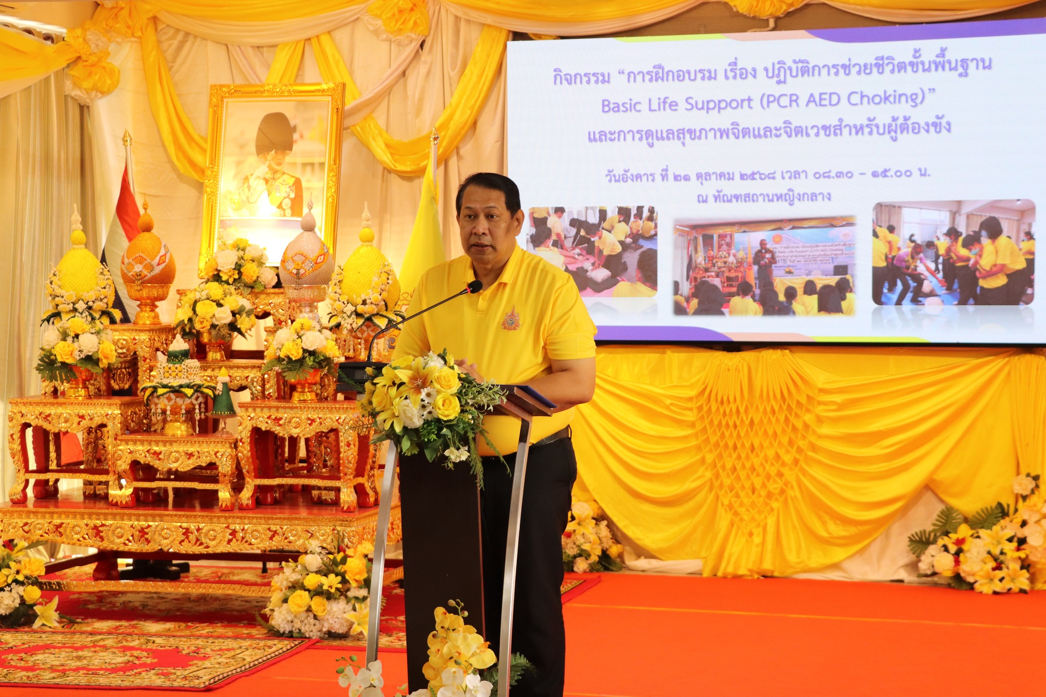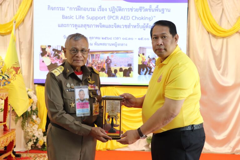 วันอังคารที่ 21 ตุลาคม 2568 พลอากาศเอก สุบิน ชิวปรีชา กรมวังผู้ใหญ่ในพระองค์ 904 ปฏิบัติหน้าที่รองผู้อำนวยการศูนย์อำนวยการใหญ่ จิตอาสาพระราชทาน ประธานจิตอาสาด้านการแพทย์และสาธารณสุข พร้อมคณะ ร่วมเป็นวิทยากรบรรยาย ในการฝึกอบรม เรื่อง ปฏิบัติการช่วยชีวิตขั้นพื้นฐาน Basic Life Support (CPR AED Choking) และการดูแลสุขภาพจิตและจิตเวชผู้ต้องขัง เพื่อให้ผู้เข้ารับการอบรมฯได้นำความรู้จากการฝึกอบรมไปปรับใช้ให้ถูกต้องตามหลักการช่วยชีวิต โดยมี นายยุทธนา นาคเรืองศรี รองอธิบดีกรมราชทัณฑ์ ฝ่ายวิชาการ นางสาววลัยลักษณ์ ชุ่มชื่น ผู้อำนวยการทัณฑสถานหญิงกลาง คณะผู้แทนจากกรมราชทัณฑ์ บุคลากรทางการแพทย์ เจ้าหน้าที่เรือนจำฯและอาสาสมัครสาธารณสุขในเรือนจำ (อสรจ.) เข้าร่วมพิธีเปิดและอบรมฯดังกล่าว ณ ทัณฑสถานหญิงกลาง