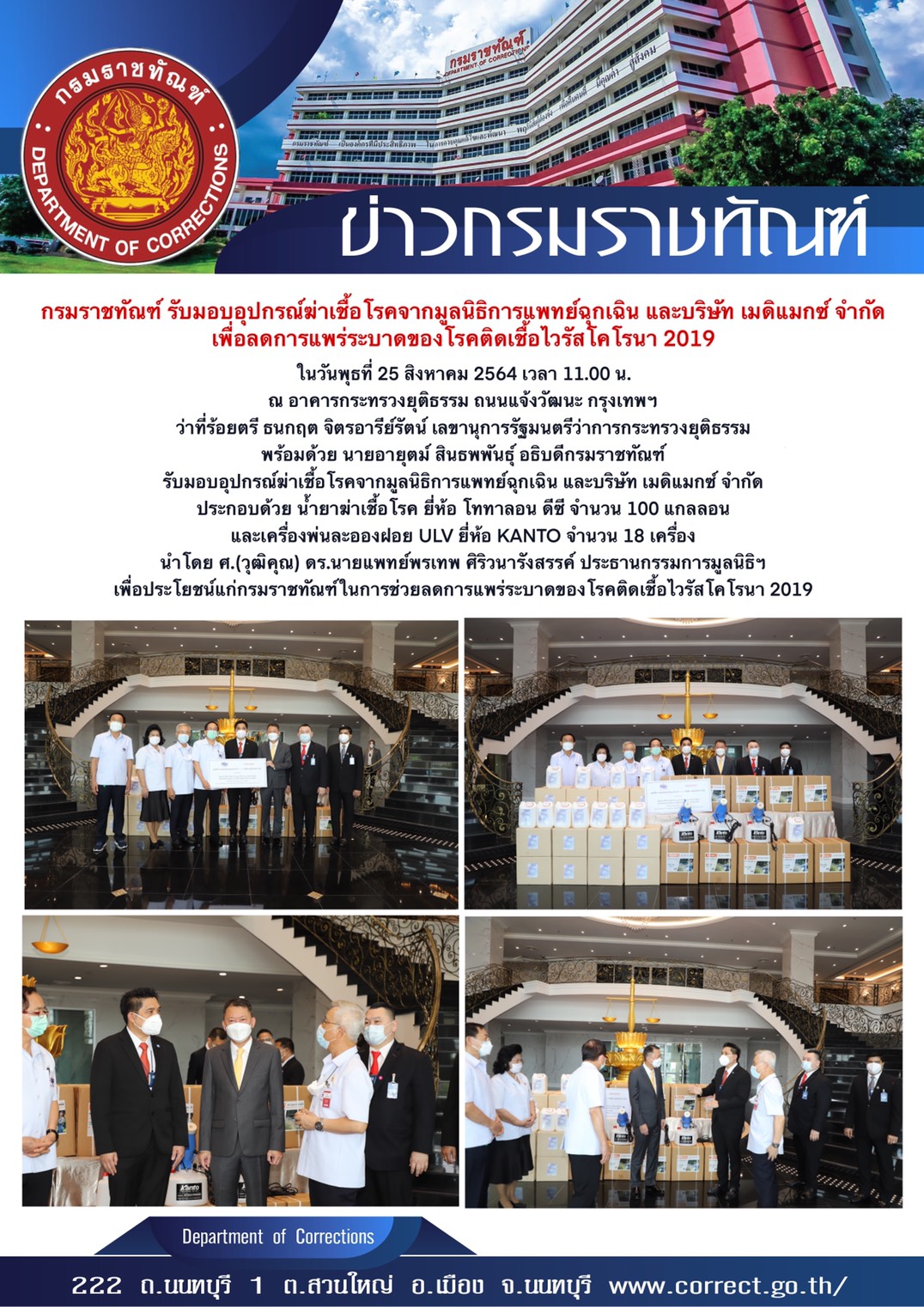 Email ติดต่อราชการ : saraban@doc.mail.go.th และ Email : prcorrection@gmail.com