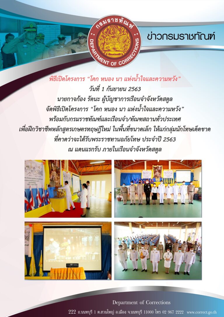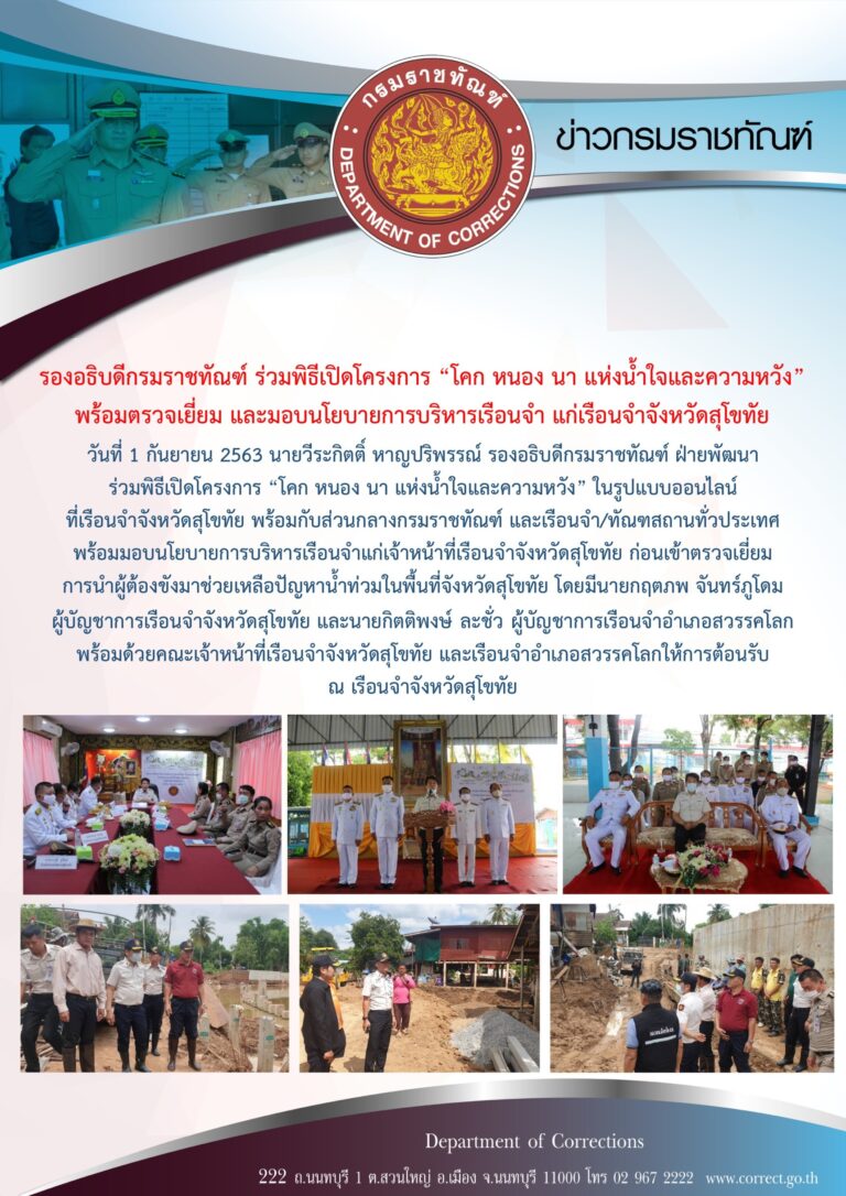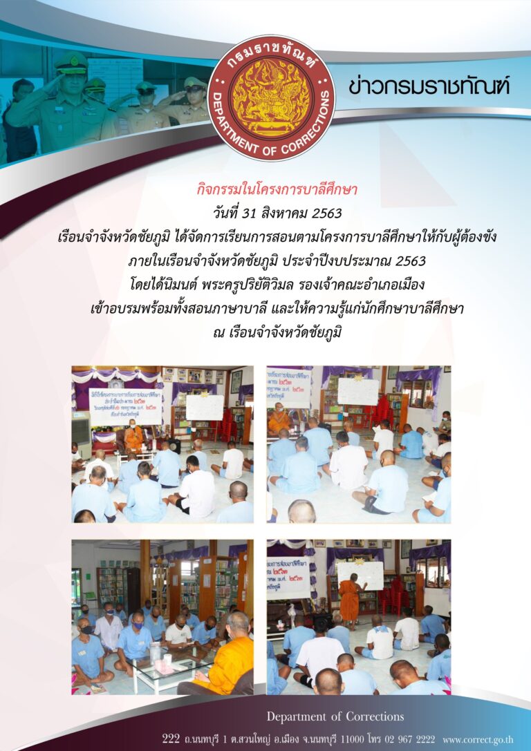 ภาพข่าวประชาสัมพันธ์กิจกรรมกรมราชทัณฑ์ประจำวันที่ 1 กันยายน 2563