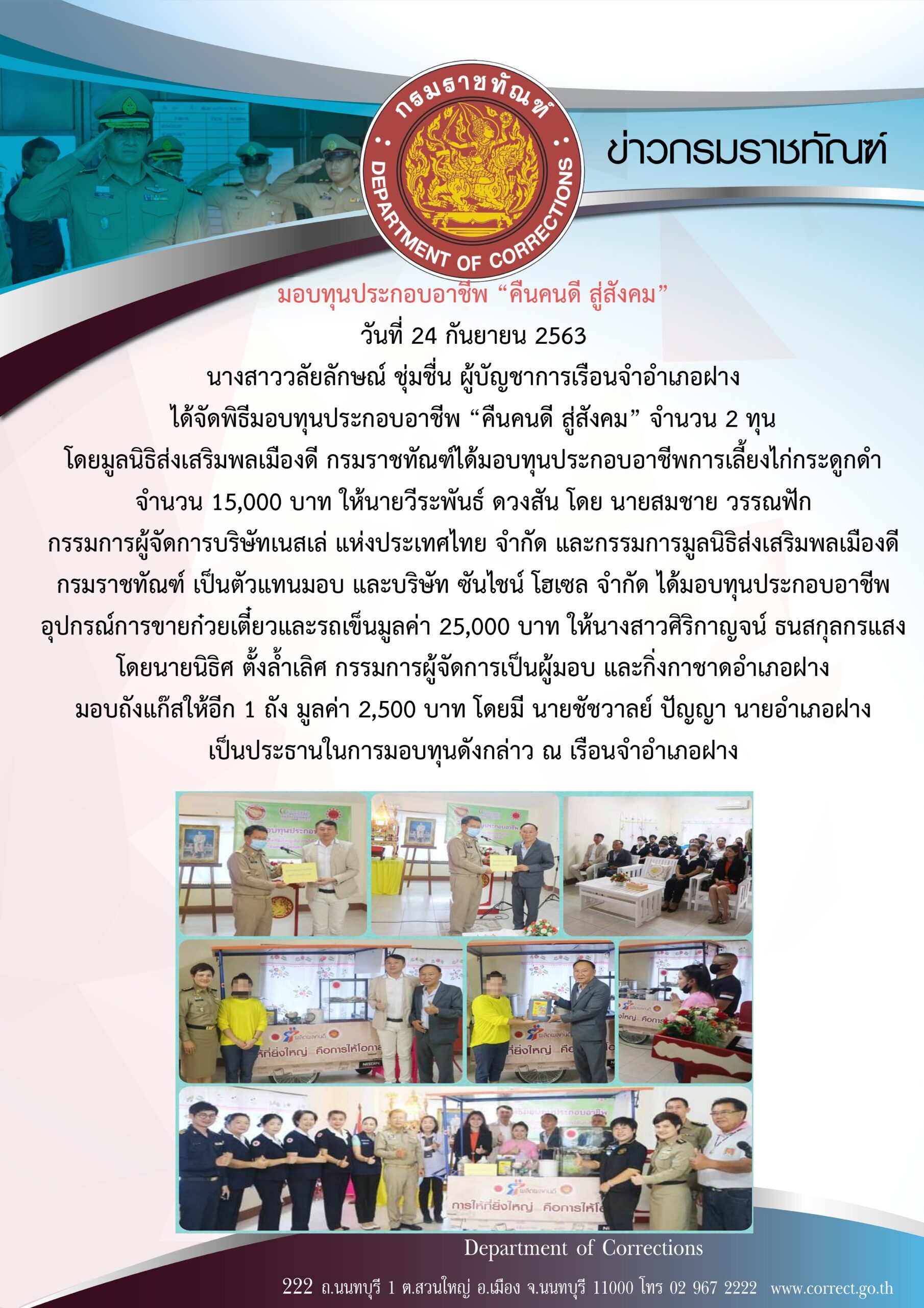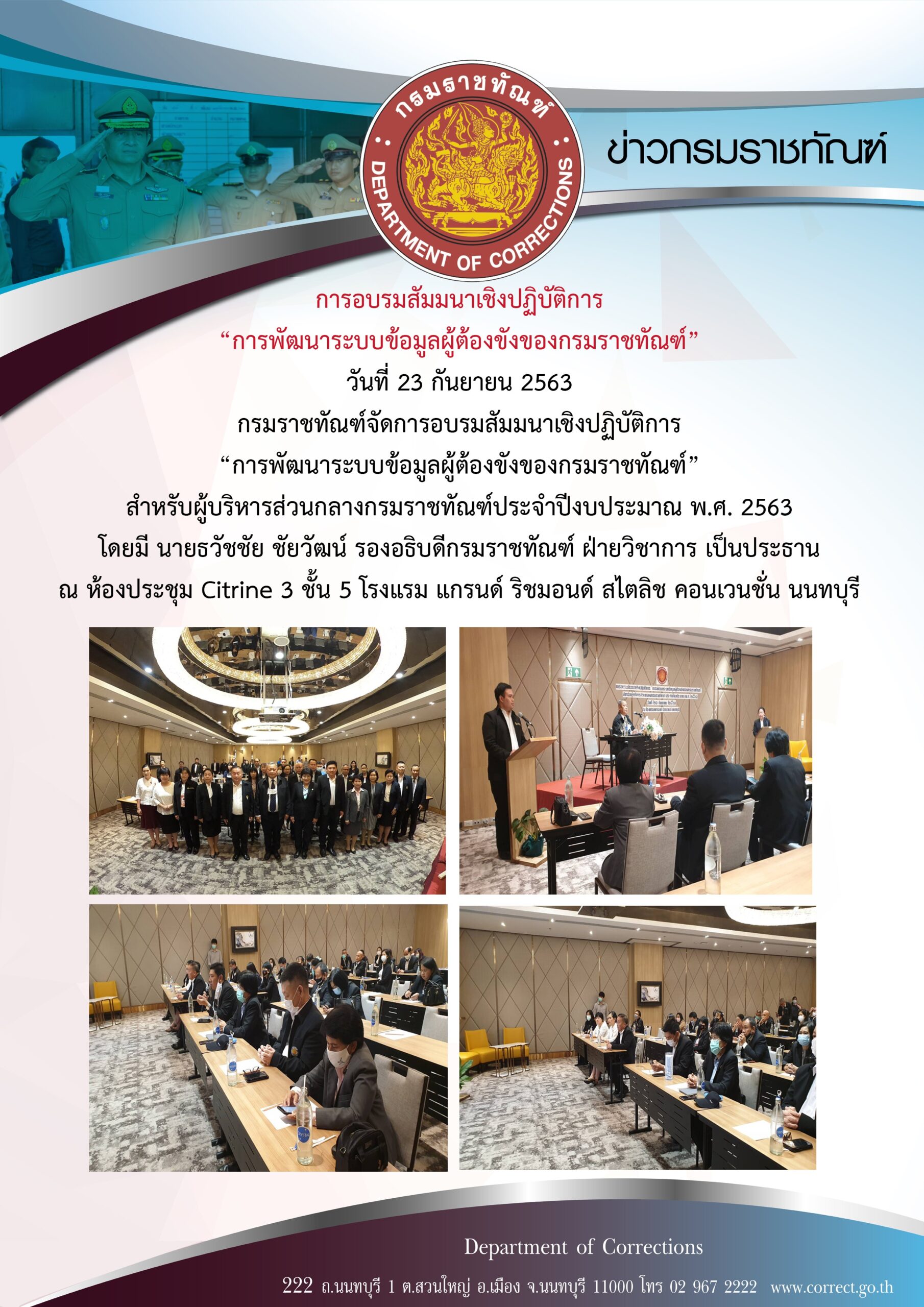 รองอธิบดีกรมราชทัณฑ์ เป็นประธานในการประชุมเชิงปฏิบัติการพัฒนาขีดความสามารถและฝึกปฏิบัติด้านการจัดการระบบบำบัดน้ำเสียในเรือนจำ ครั้งที่ 2