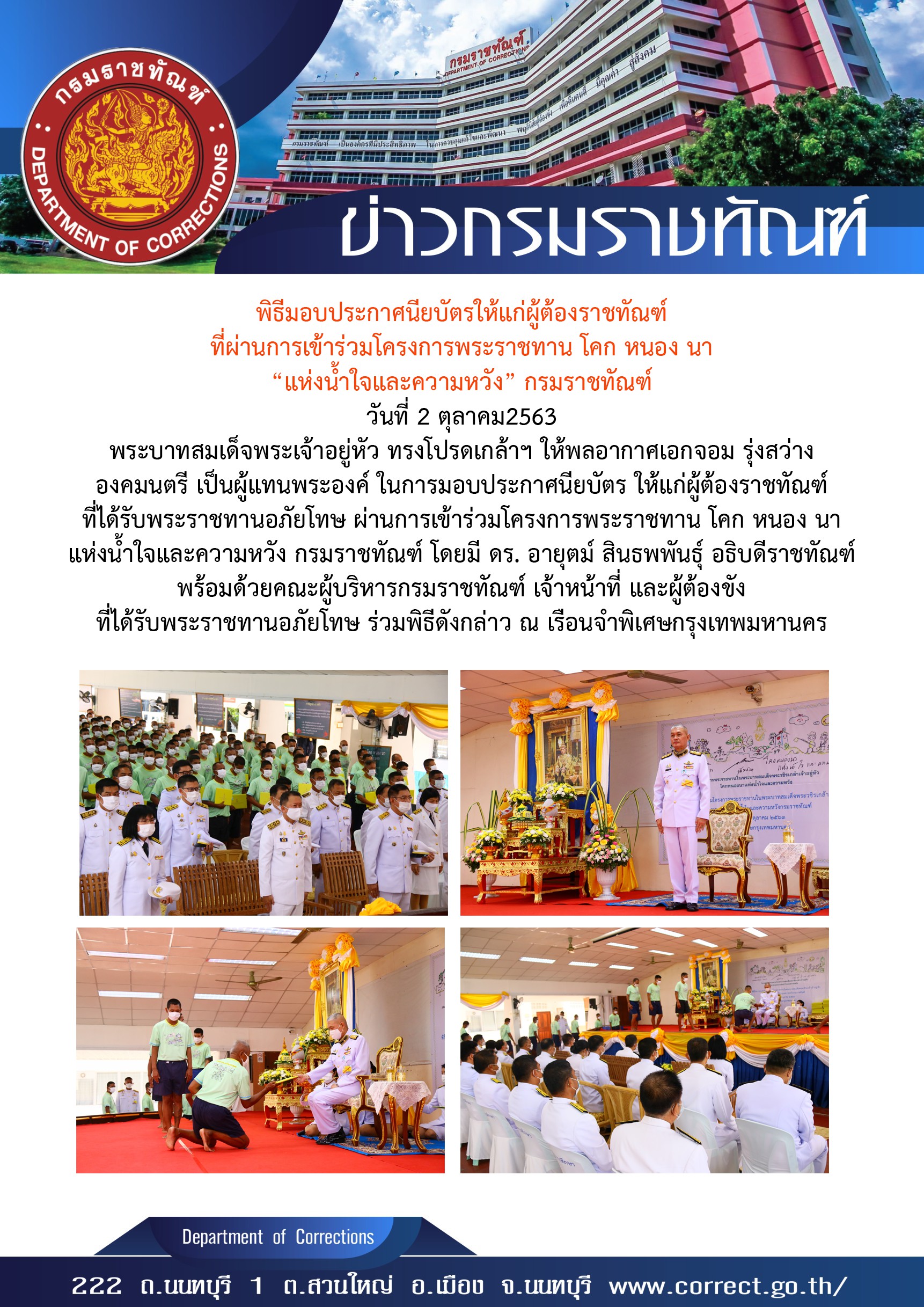 Email ติดต่อราชการ : saraban@doc.mail.go.th และ Email : prcorrection@gmail.com