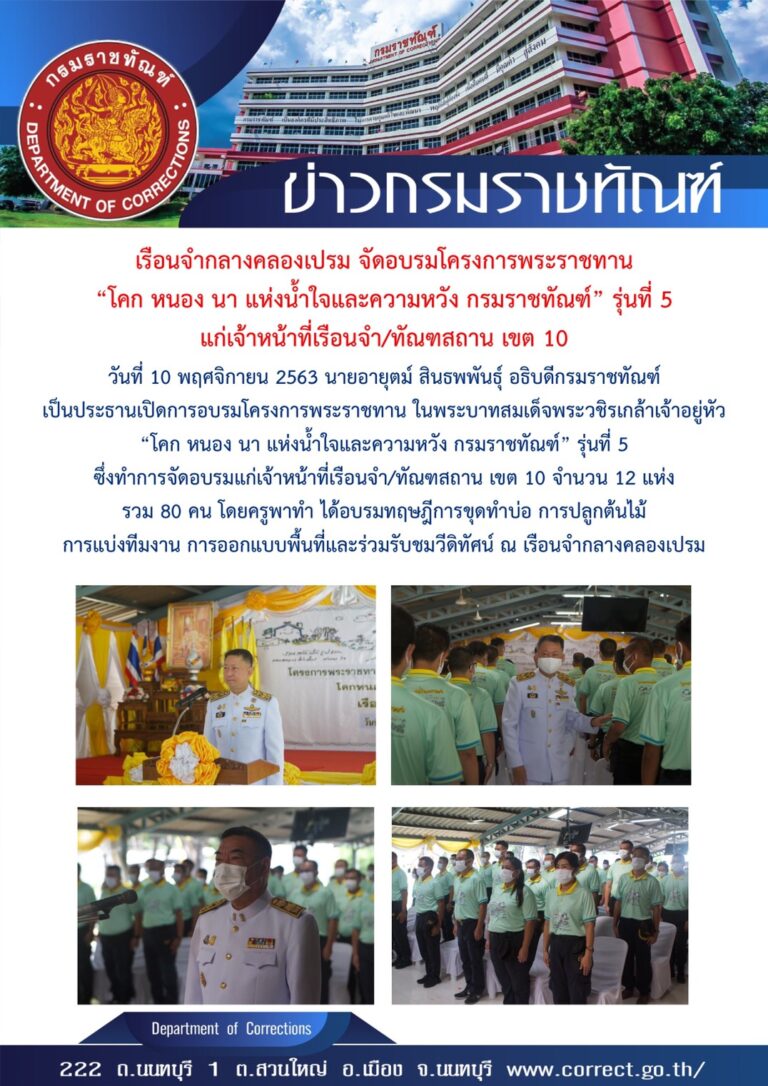 รองอธิบดีกรมราชทัณฑ์ เป็นประธานในการประชุมเชิงปฏิบัติการพัฒนาขีดความสามารถและฝึกปฏิบัติด้านการจัดการระบบบำบัดน้ำเสียในเรือนจำ ครั้งที่ 2