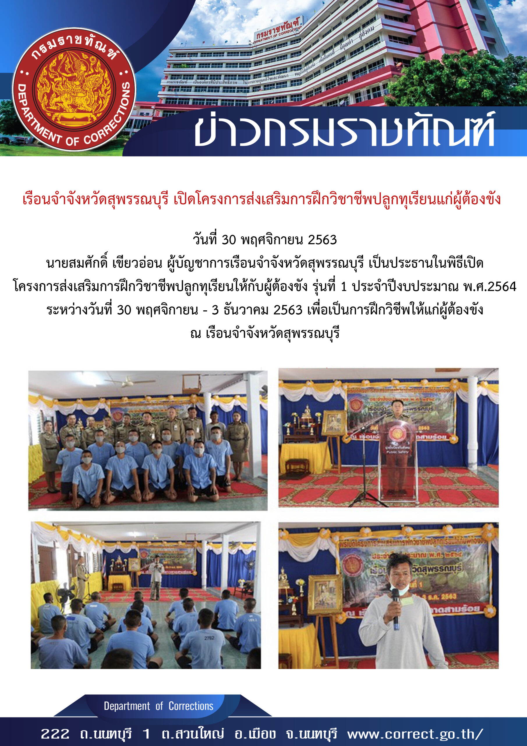 รองอธิบดีกรมราชทัณฑ์ เป็นประธานในการประชุมเชิงปฏิบัติการพัฒนาขีดความสามารถและฝึกปฏิบัติด้านการจัดการระบบบำบัดน้ำเสียในเรือนจำ ครั้งที่ 2