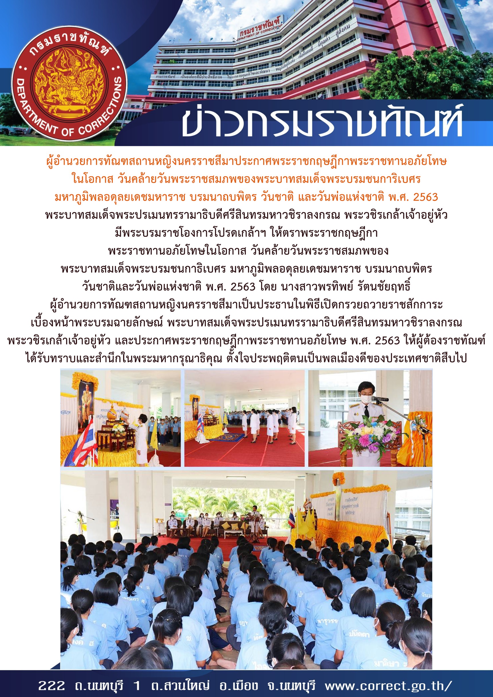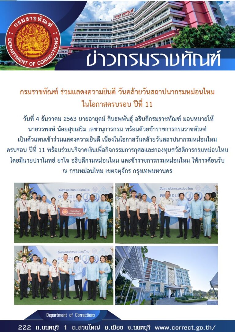 กรมราชทัณฑ์ จัดพิธีลงนามถวายพระพรชัยมงคล สมเด็จพระกนิษฐาธิราชเจ้า กรมเด็จพระเทพรัตนราชสุดาฯ สยามบรมราชกุมารี เนื่องในโอกาสวันคล้ายวันพระราชสมภพ วันที่ 2 เมษายน 2569