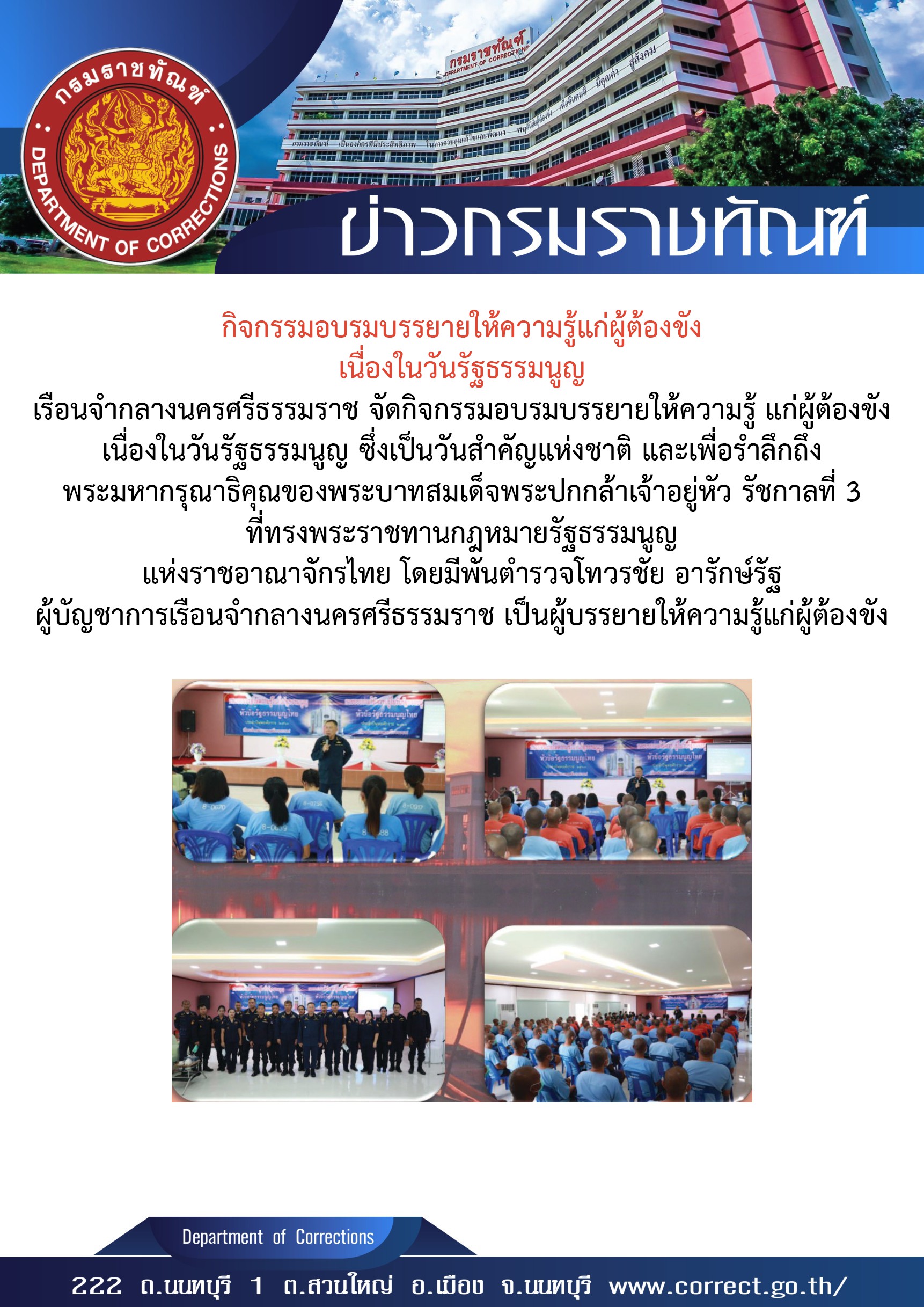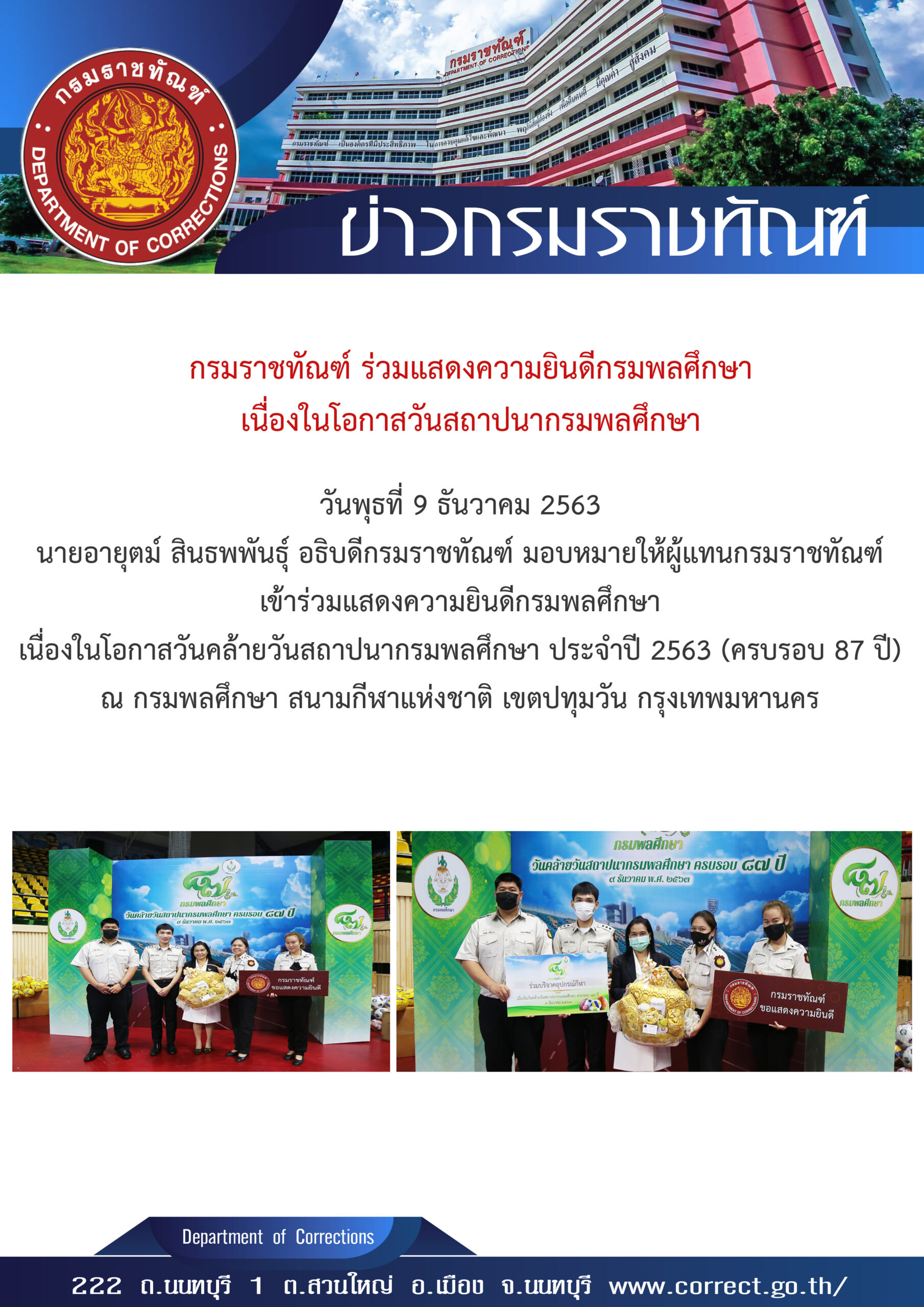 Email ติดต่อราชการ : saraban@doc.mail.go.th และ Email : prcorrection@gmail.com