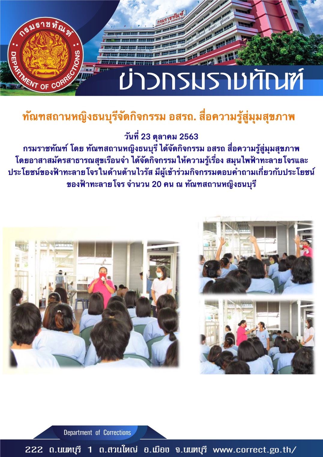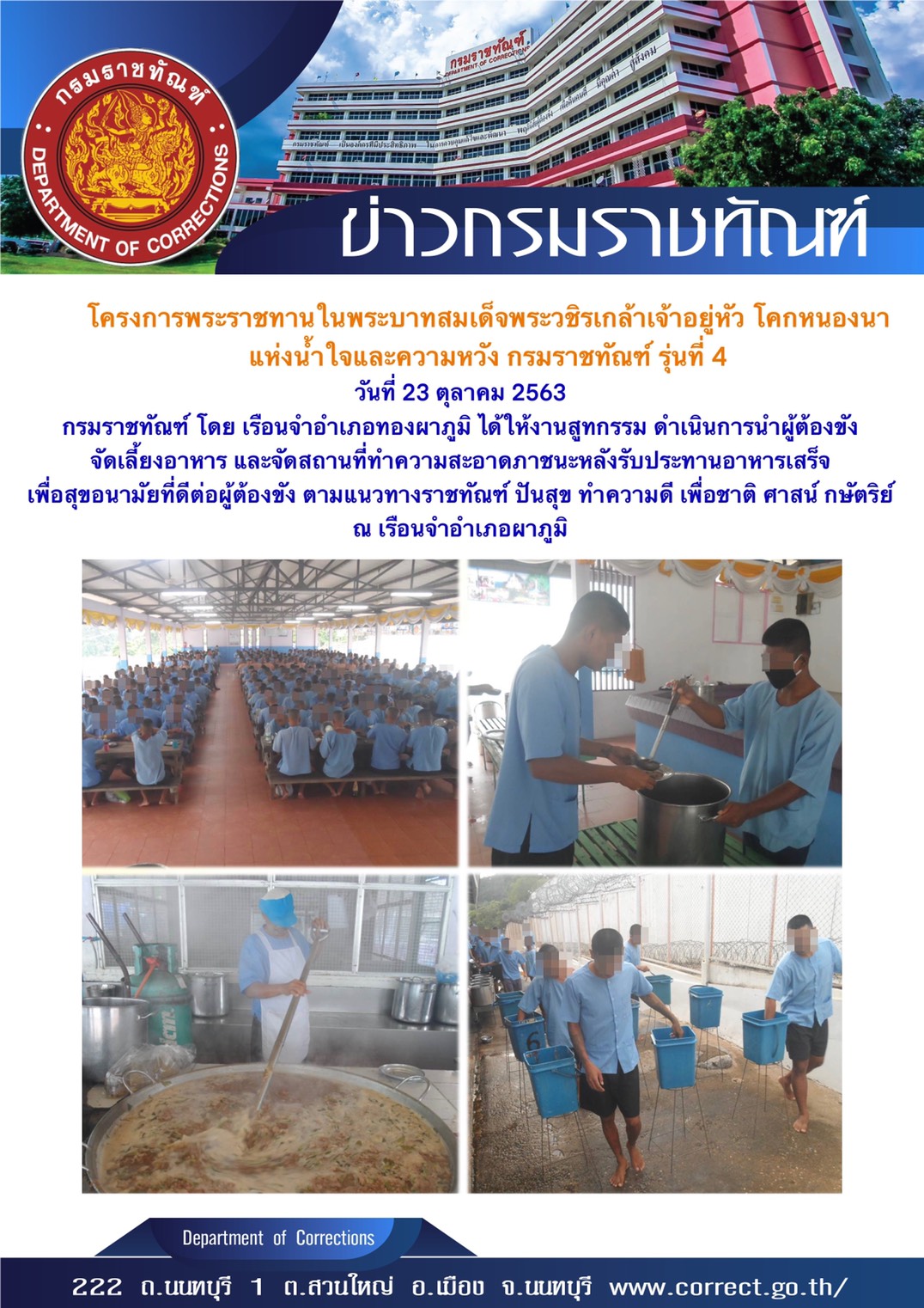 หน้าแรก » ภาพข่าวประชาสัมพันธ์ กิจกรรมกรมราชทัณฑ์ วันที่ 23-25 ตุลาคม 2563