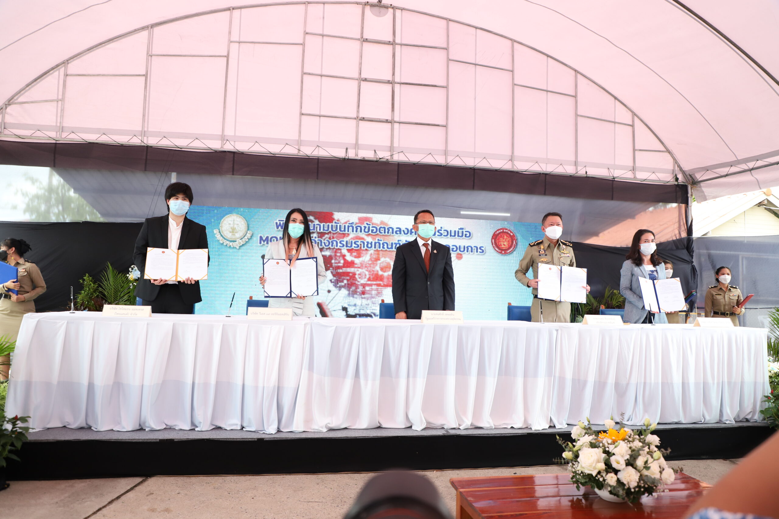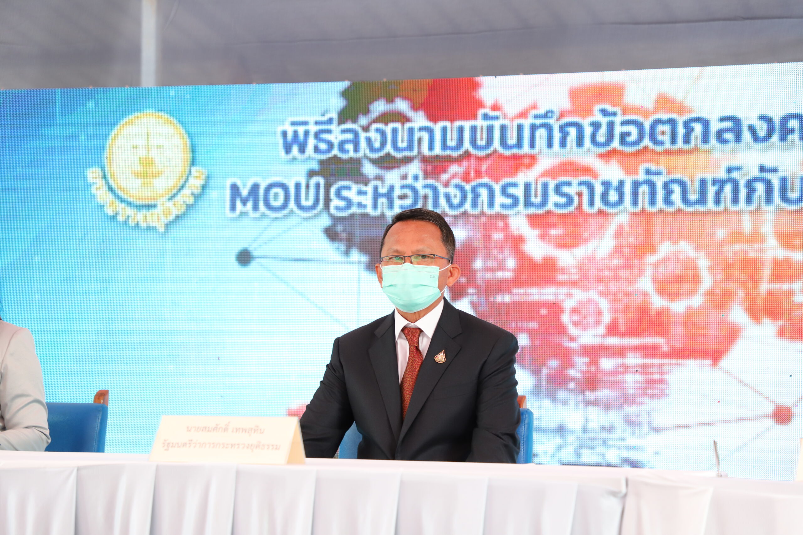 📌วันที่ 11 ตุลาคม 2564 ณ เรือนจำกลางสมุทรปราการ อำเภอบางบ่อ จังหวัดสมุทรปราการ นายสมศักดิ์ เทพสุทิน รัฐมนตรีว่าการกระทรวงยุติธรรม เป็นประธานในพิธีลงนามบันทึกข้อตกลงว่าด้วยการประสานความร่วมมือ ระหว่างกรมราชทัณฑ์ กับ สถานประกอบการ และพิธีปล่อยตัวผู้พ้นโทษออกไปทำงาน โครงการ “สร้างงาน สร้างอาชีพ ฝึกทักษะการทำงานในภาคอุตสาหกรรม เรือนจำกลางสมุทรปราการ (โครงการ พักการลงโทษกรณีมีเหตุพิเศษ)” โดยมี ว่าที่ร้อยตรี ธนกฤต จิตรอารีย์รัตน์ เลขานุการรัฐมนตรีว่าการกระทรวงยุติธรรม นางสาวณัฐธ์ภัสส์ ยงใจยุทธ ผู้ช่วยรัฐมนตรีประจำกระทรวงยุติธรรม นายสหการณ์ เพ็ชรนรินทร์ รองปลัดกระทรวงยุติธรรม นายอายุตม์ สินธพพันธุ์ อธิบดีกรมราชทัณฑ์ นายวิตถวัลย์ สุนทรขจิต อธิบดีกรมคุมประพฤติ นายวันชัย คงเกษม ผู้ว่าราชการจังหวัดสมุทรปราการ นายโฆสิต สุวินิจจิต ประธานอนุกรรมการศึกษาแนวทางการจัดตั้งนิคมอุตสาหกรรม ราชทัณฑ์ นายวีริศ อัมระปาล ผู้ว่าการการนิคมอุตสาหกรรมแห่งประเทศไทย นายสิทธิ สุธีวงศ์ รองอธิบดีกรมราชทัณฑ์ นายยุทธนา นาคเรืองศรี ผู้บัญชาการเรือนจำกลางสมุทรปราการ ตลอดจนผู้บริหารหน่วยงานเอกชนและผู้ประกอบการในจังหวัดสมุทรปราการ ร่วมในพิธี