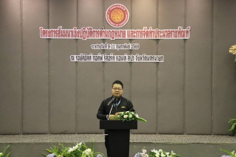 วันพุธที่ 11 กุมภาพันธ์ 2569 นายชาญ วชิรเดช รองอธิบดีกรมราชทัณฑ์ ฝ่ายพัฒนา เป็นประธานในพิธีปิดโครงการสัมมนาเชิงปฏิบัติการด้านกฎหมาย และการจัดทำประมวลราชทัณฑ์ โดยมี ผู้บัญชาการเรือนจำ/ผู้อำนวยการทัณฑสถาน ทั่วประเทศ ผู้อำนวยการกอง ผู้บริหารส่วนกลางกรมราชทัณฑ์ เข้าร่วมโครงการดังกล่าว ระหว่างวันที่ 9 – 11 กุมภาพันธ์ 2569 ณ โรงแรมรอยัล ฮิลล์ กอล์ฟ รีสอร์ท แอนด์ สปา จังหวัดนครนายก