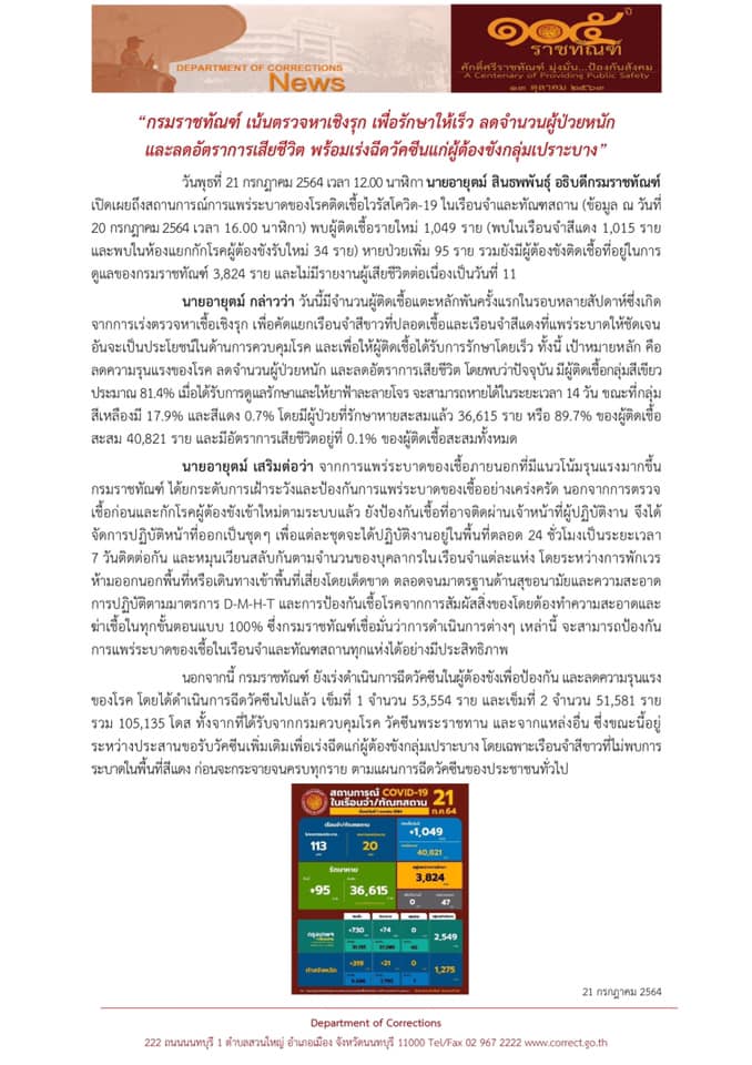 Email ติดต่อราชการ : saraban@doc.mail.go.th และ Email : prcorrection@gmail.com