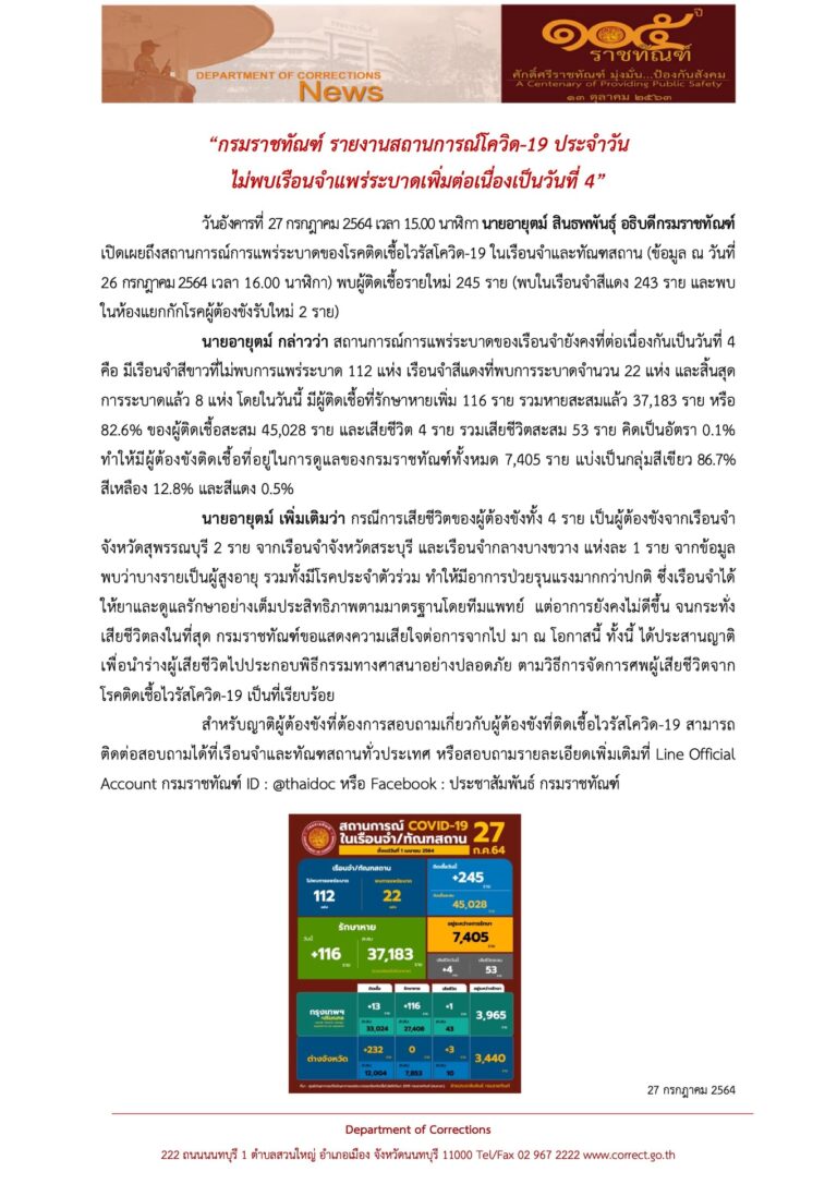 หน้าแรก » สถานการณ์โควิดในเรือนจํา/ทัณฑสถานประจำวันที่ 27 ก.ค. 64