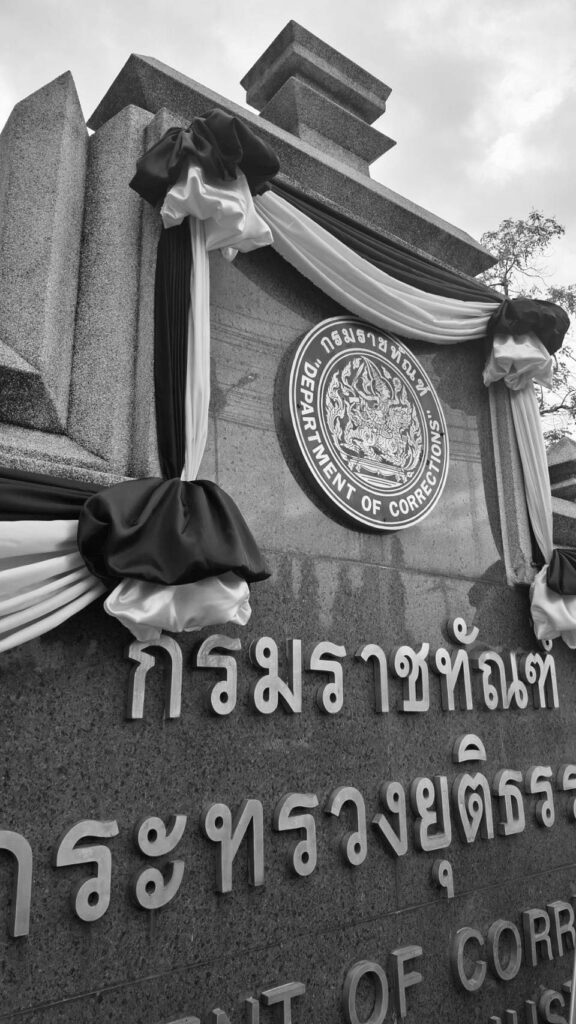 กรมราชทัณฑ์ ประดับผ้าขาวดำตามแนวรั้ว เพื่อแสดงความอาลัยสมเด็จพระนางเจ้าสิริกิติ์ พระบรมราชินีนาถ พระบรมราชชนนีพันปีหลวง