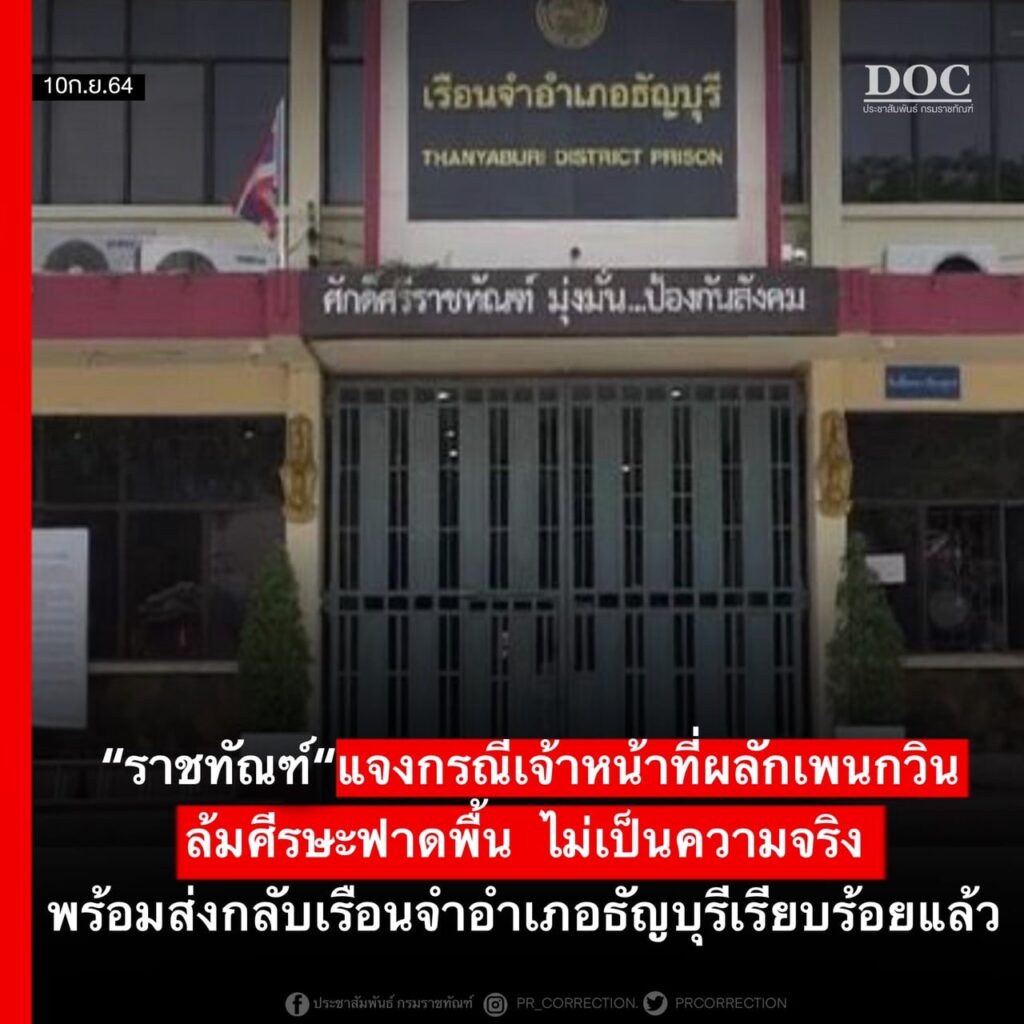 “ราชทัณฑ์” แจงกรณีเจ้าหน้าที่ผลักเพนกวินล้มศีรษะฟาดพื้น…ไม่เป็นความจริง พร้อมส่งกลับเรือนจำอำเภอธัญบุรีเรียบร้อยแล้ว