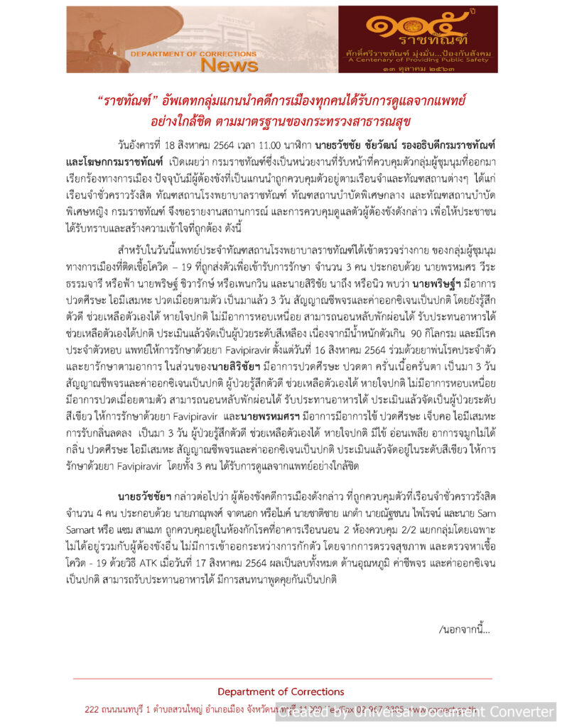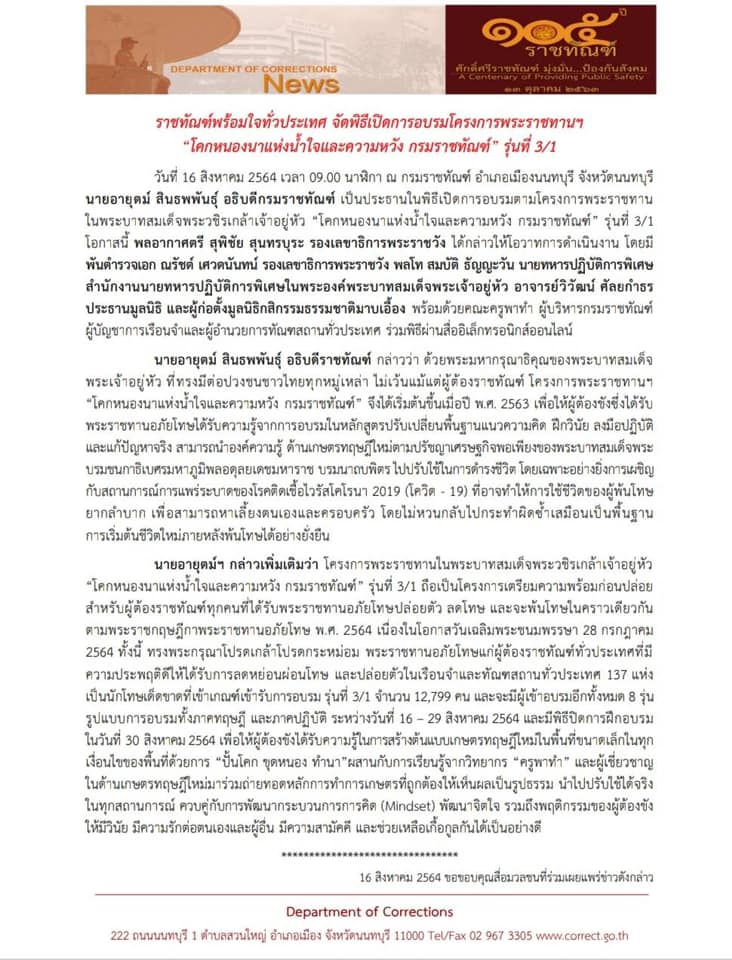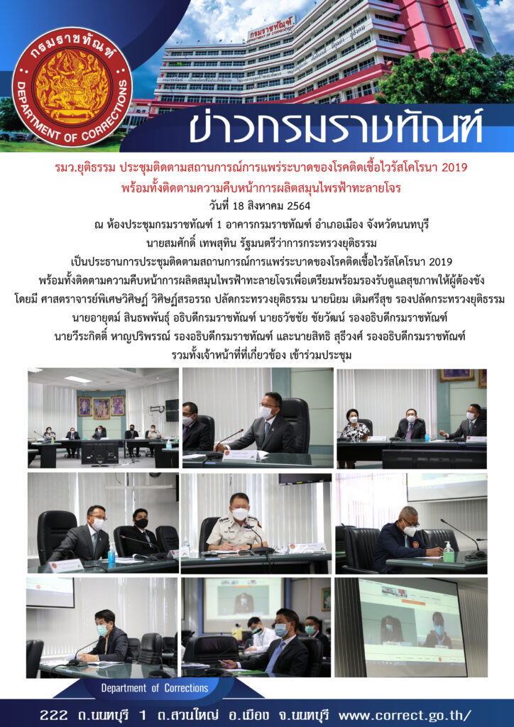 รมว.ยุติธรรม แย้มยังไม่โยกย้าย ผบ.เรือนจำ จนกว่าจัดการสถานการณ์โควิดเรียบร้อย กำชับรีบให้ยาฟ้าทะลายโจรนักโทษติดโควิด-กลุ่มเสี่ยง เตรียมสต็อกของให้พร้อม มอบโรงพยาบาลราชทัณฑ์ศึกษาการผลิตฟ้าทะลายโจร-ขอใบอนุญาต พร้อมทำคู่มือการใช้แบบเข้าใจง่าย