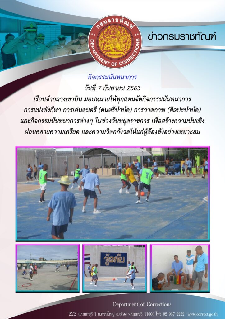 ภาพข่าวประชาสัมพันธ์กิจกรรมกรมราชทัณฑ์ประจำวันที่ 9 กันยายน 2563